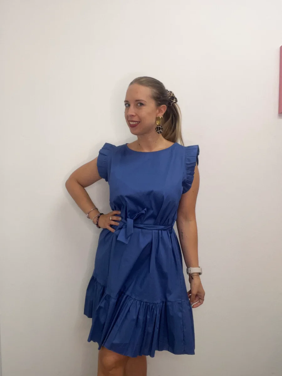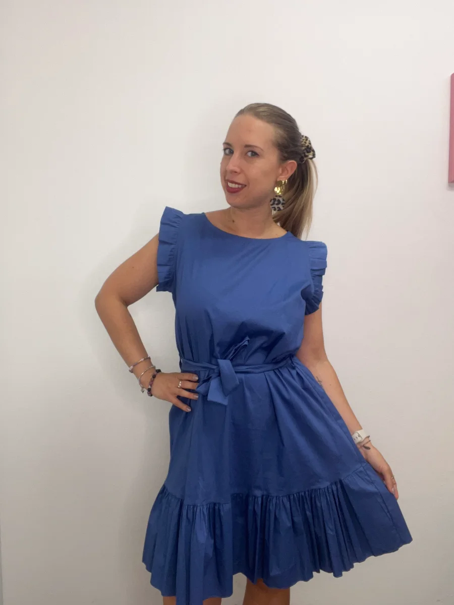 Abito con volants e cinntura a fiorellini – abbigliamento – Stilosa