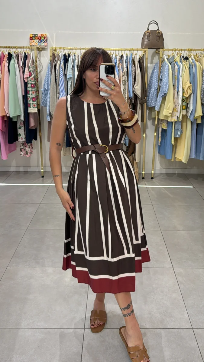 Abito in cotone con cinta in ecopelle compresa , veste fino ad una tg 46 .