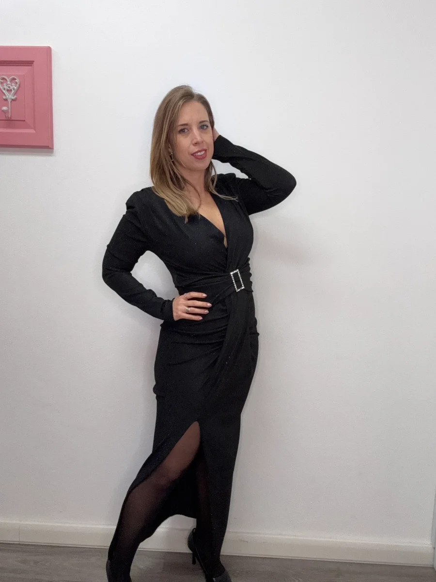 Abito lungo lurex con cintura quadra – abbigliamento – Stilosa