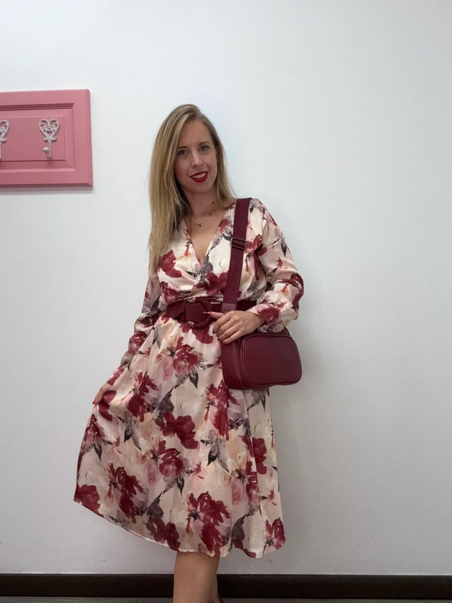 Abito midi fantasia fiorita. Vestibilitร piccola