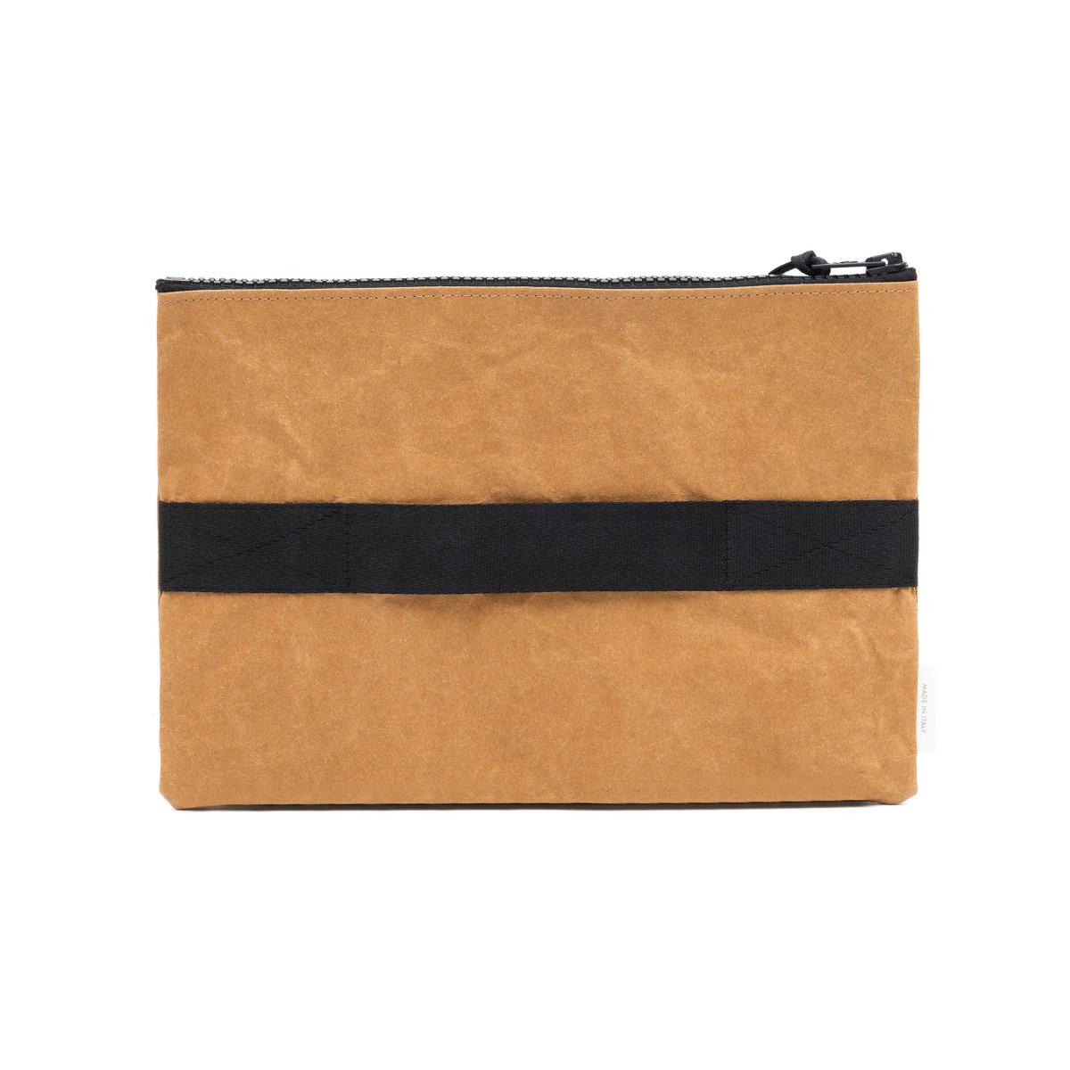 Astuccio realizzato in fibra di cellulosa lavabile. Chiusura con cerniera neraย e tiretto in cotone. Sul retro รจ presente una pratica maniglia per poterlo portare a mano. Lavabile in lavatrice a 30ยฐ con sapone neutro. Dimensioni: 33 x 23 cm.