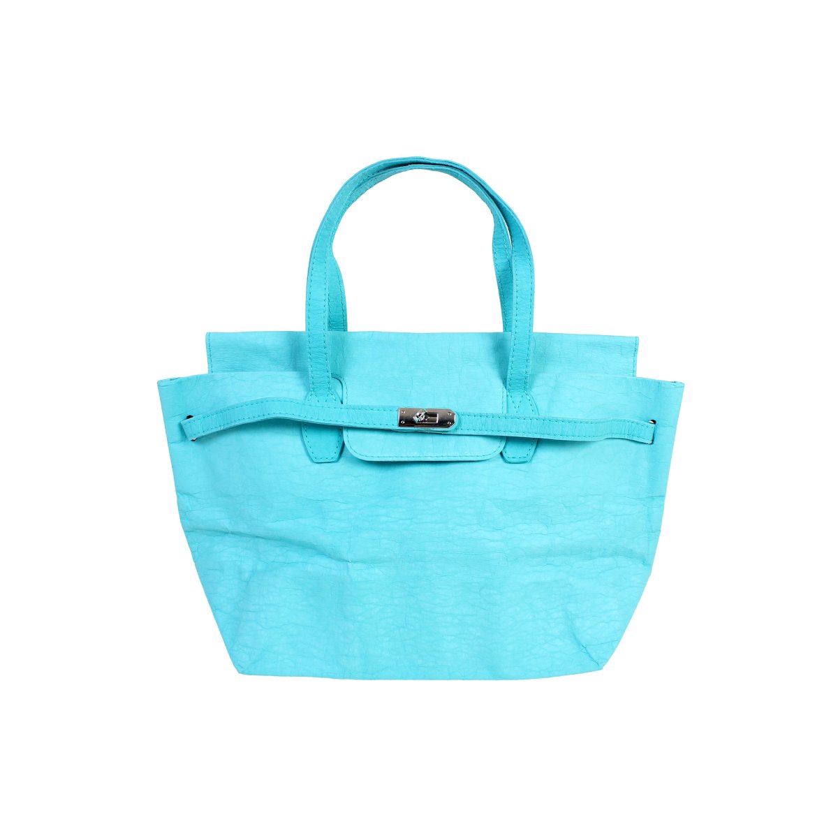 Borsa da donna realizzata in fibra di cellulosa lavabile. La borsa ha due tasche interne in fibra di cellulosa lavabile: una grande con cerniera e un taschino piccolo porta cellulare. La borsa ha due fibbie in fibra di cellulosa che si uniscono al centro grazie ad una chiusura a scatto sul fronte. I manici sono realizzati anch’essi in fibra di cellulosa. E’ possibile usarla come borsa a mano. Lavabile separatamente in lavatrice a 30° con sapone neutro. Per la tipologia di tintura utilizzata, ogni borsa può essere diversa l’una dall’altra, diventando così un prodotto unico. Dimensioni: 39 x 16 x…