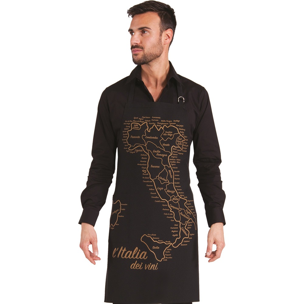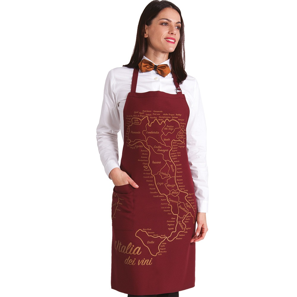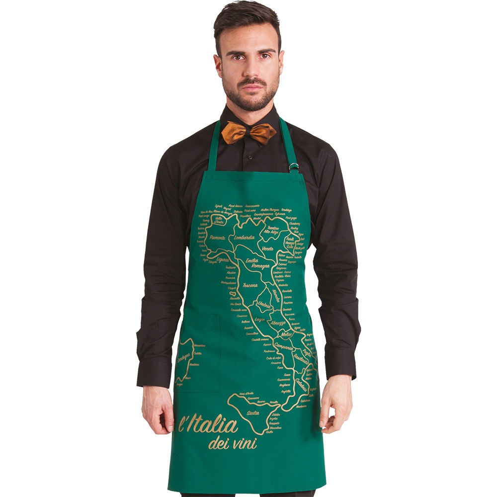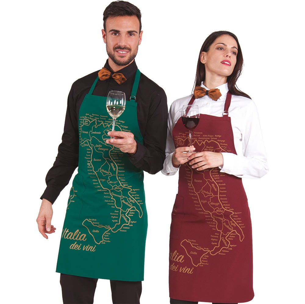 GREMBIULE CON PETTORINA โ paragrembo unisex con schiena scoperta, collo regolabile con fibbia, ampia tasca centrale divisa al centro. Disponibile neutro oppure con stampa “Italia dei Vini”. Taglia unica, vestibilitร regolabile con lacci – Tessuto antimacchia Candeggiabile – No stiro