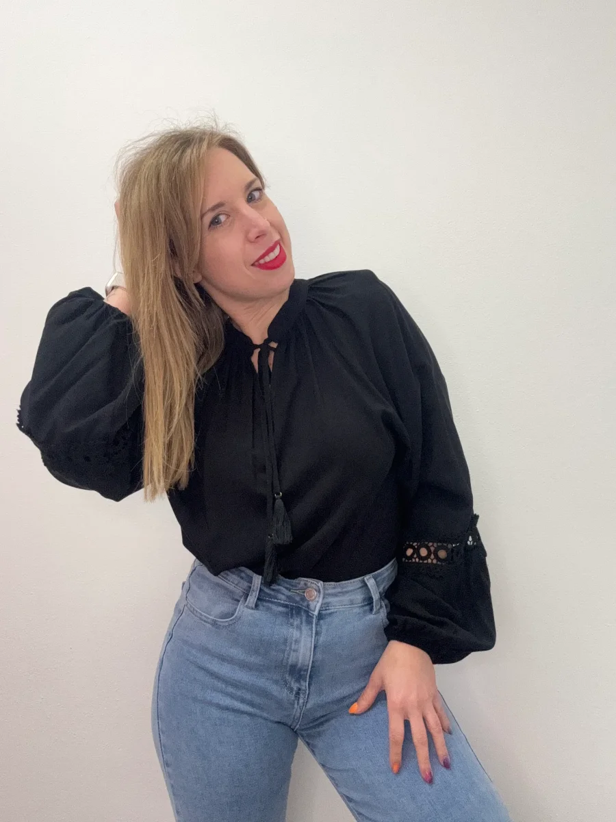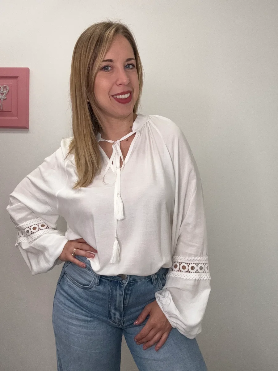 Blusa collo pistagna con macramè – abbigliamento – Artigli