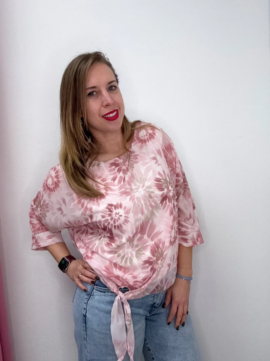 Blusa con nodo fiorita – abbigliamento – Stilosa