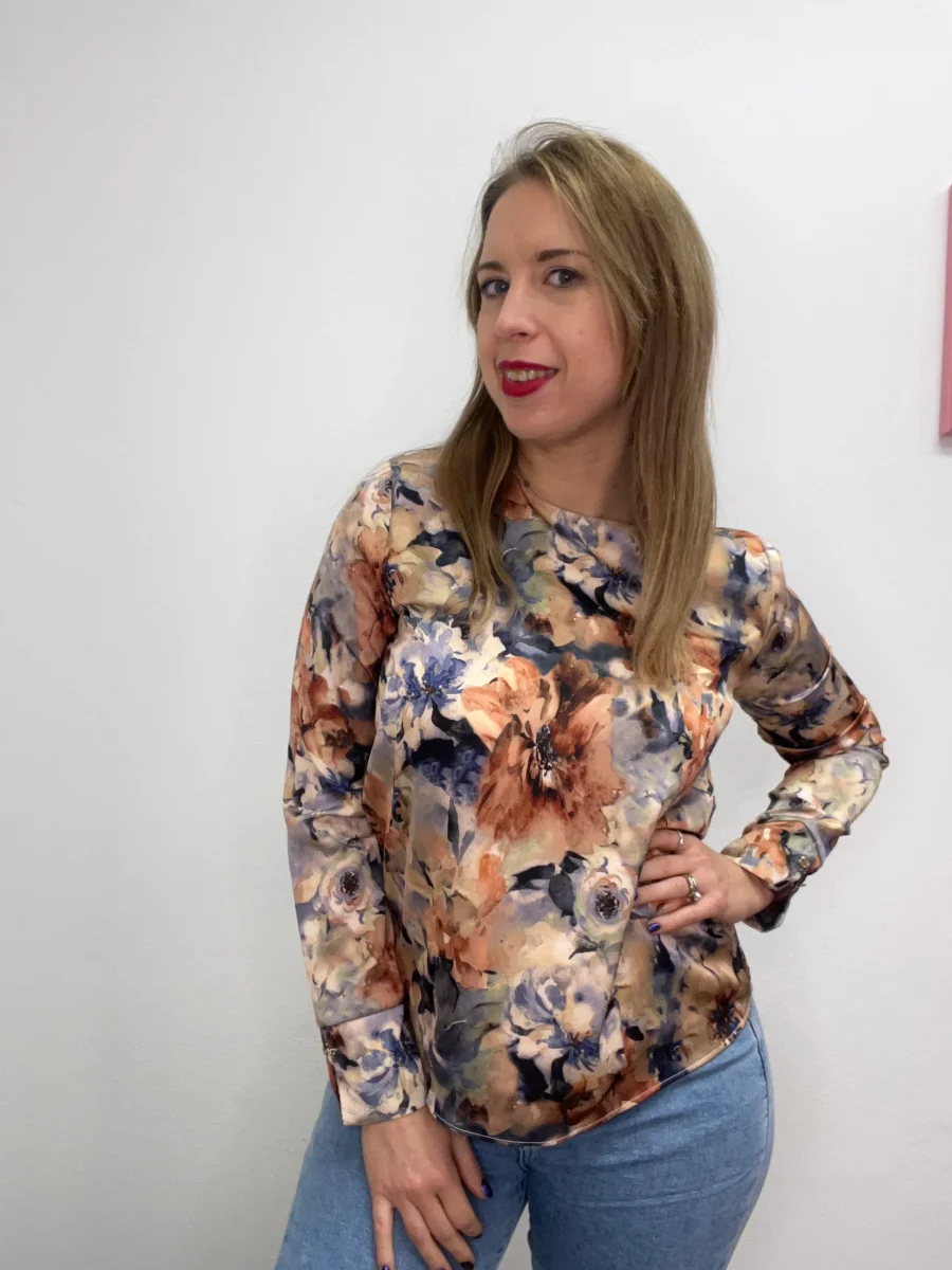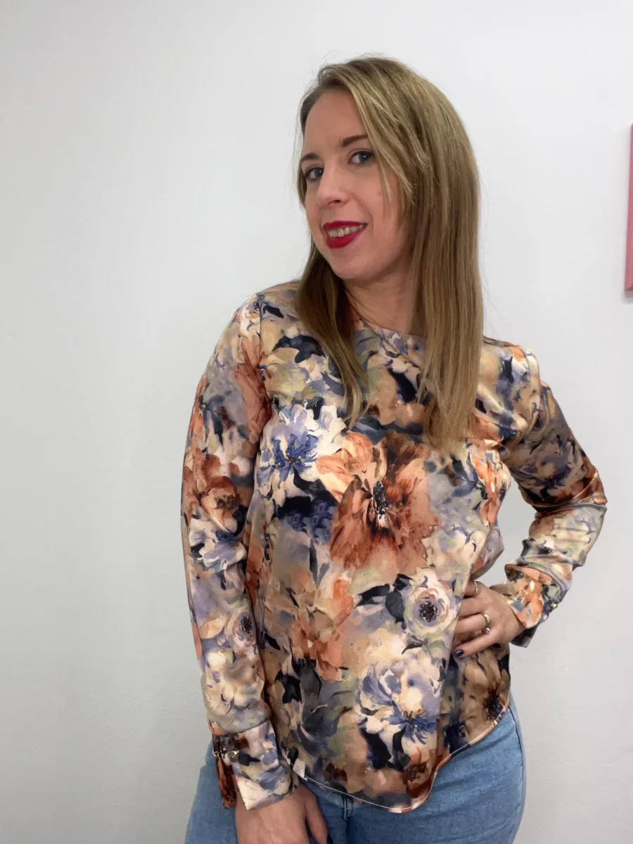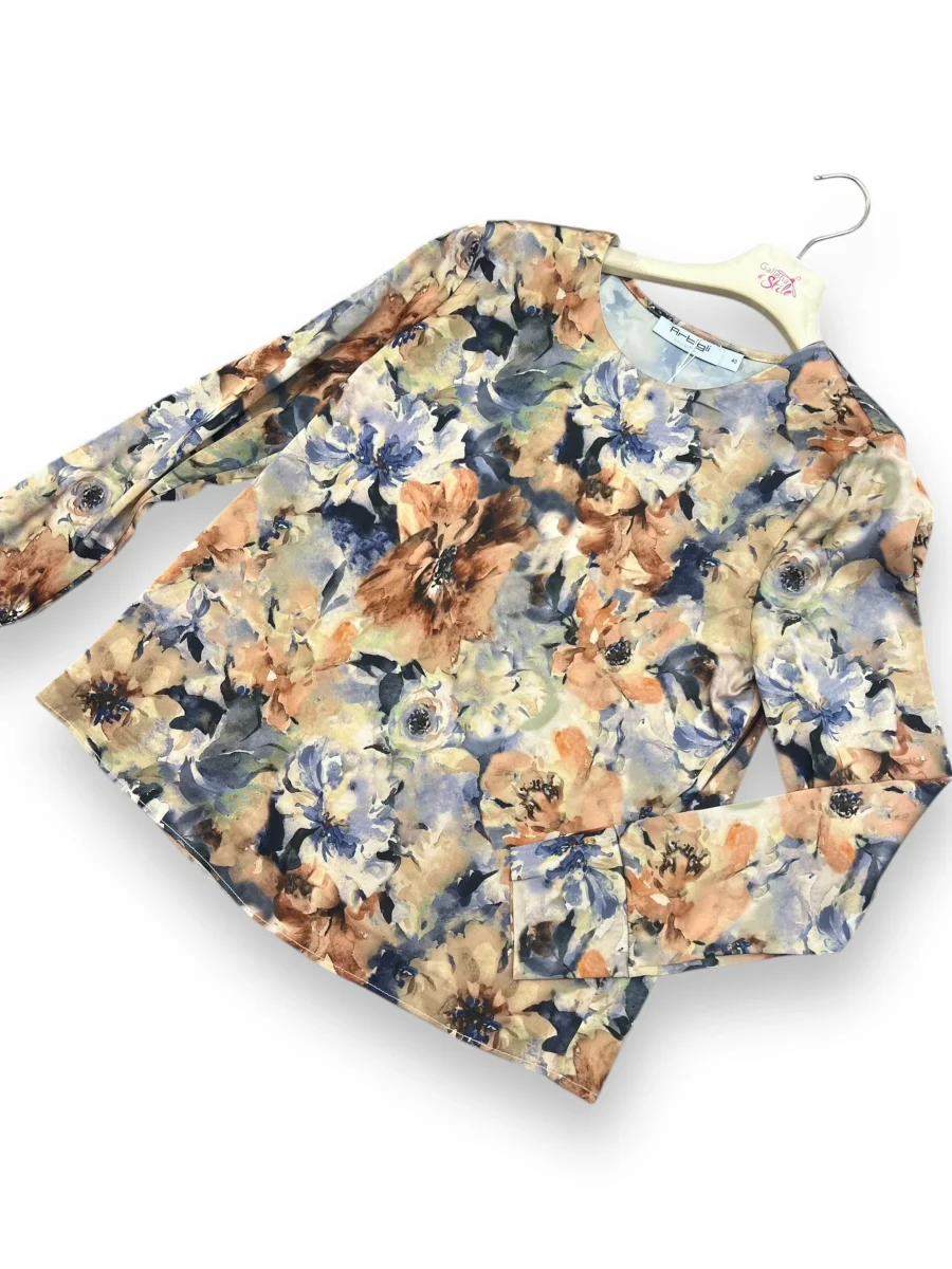 Blusa fantasia autunnale. Vestibilitร regolare tessuto fermo