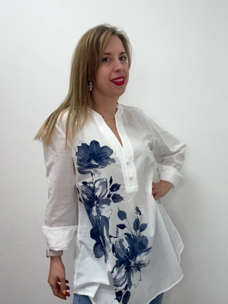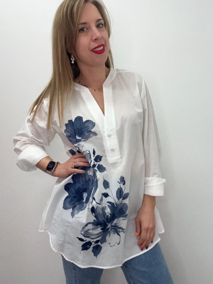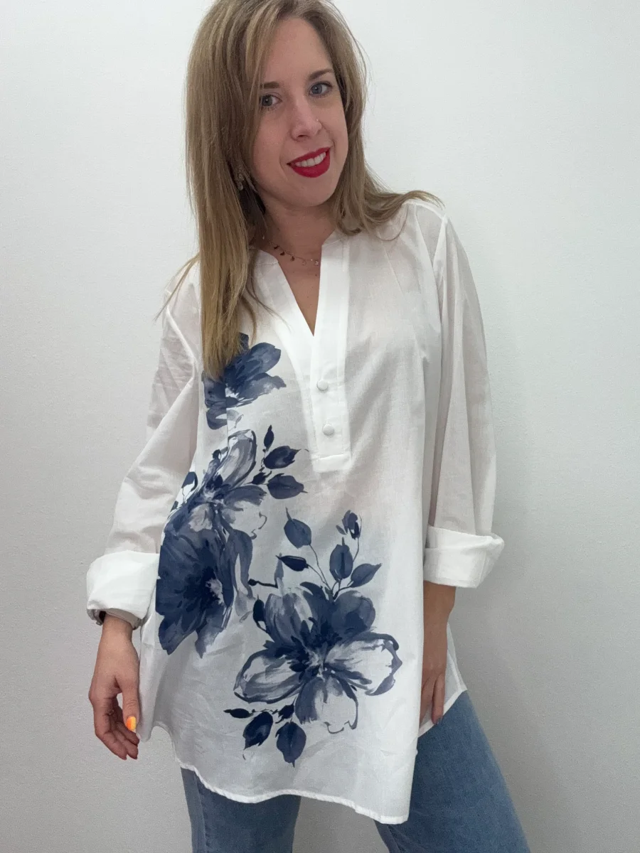 Blusa scollo V e stampa – abbigliamento – Jiveley