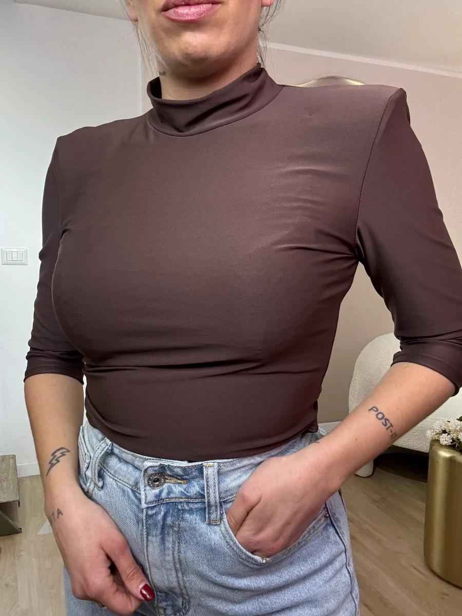 Body manica 3/4 in lycra con spallina. Vestibilitร regolare, fino a una taglia 46