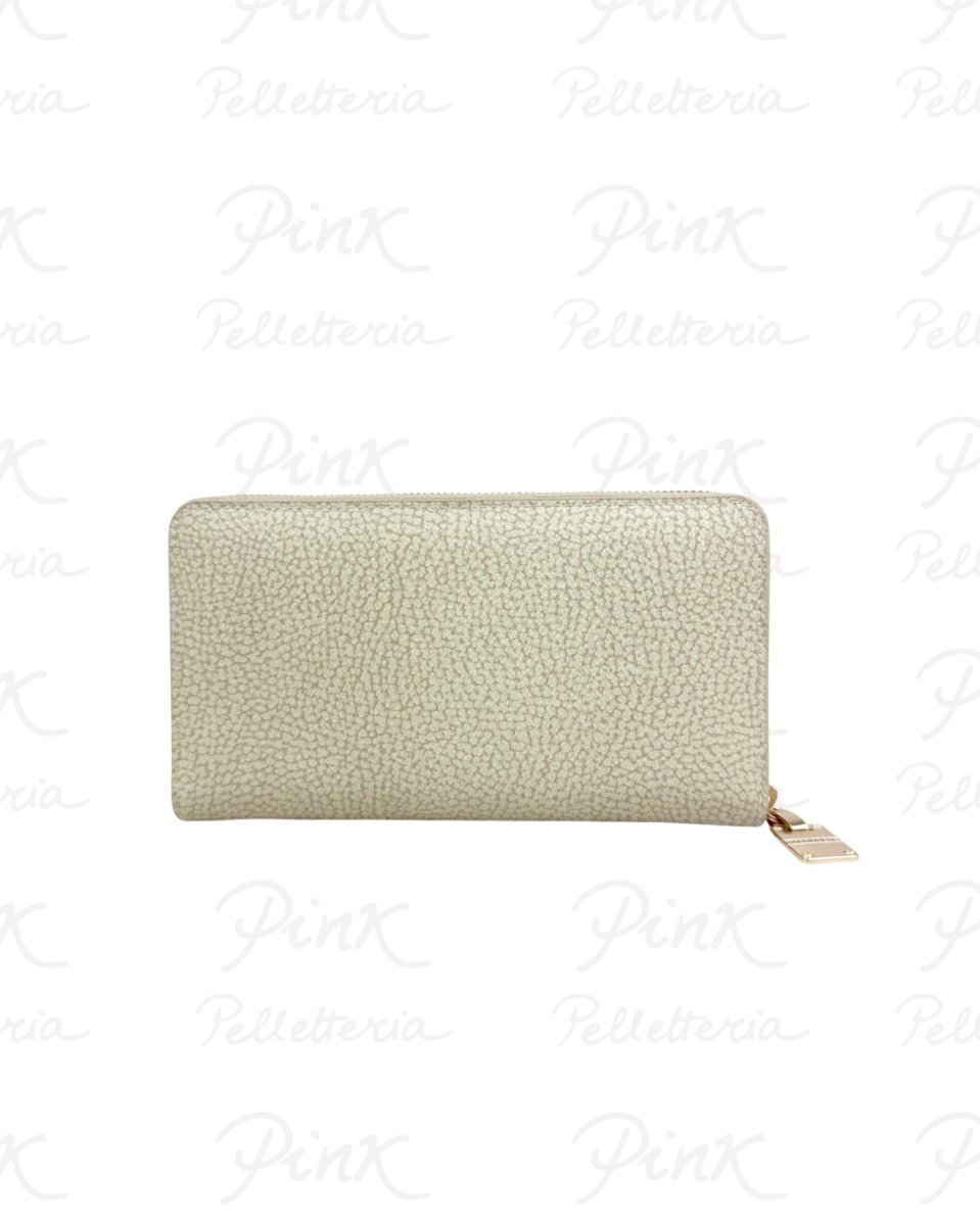 BORBONESE Classica P.Foglio Large Zip Around Tela Pu Op Soft/Vitello 9200530193 C75 Sabbia