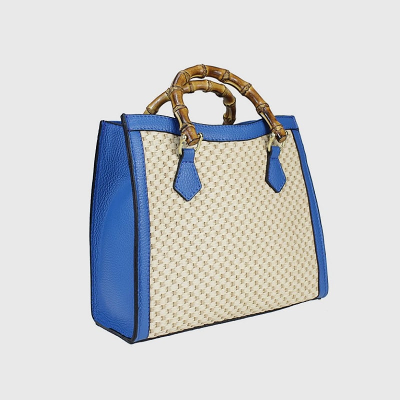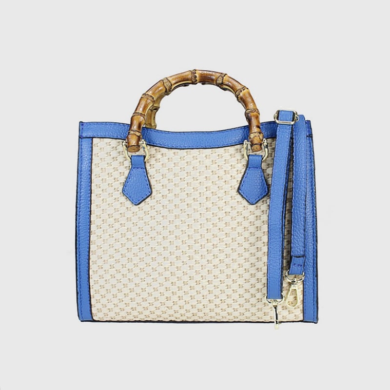 BORSA IN RAFIA CON MANICI DI BAMBU LEONARDA LARGE – DISPONIBILE IN VARI COLORI