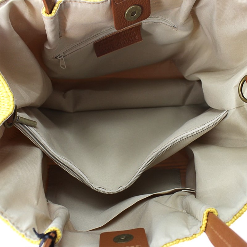 • il tipo di materiale è Rafia naturale ed Pelle Tion, pieno fiore di vitello liscio