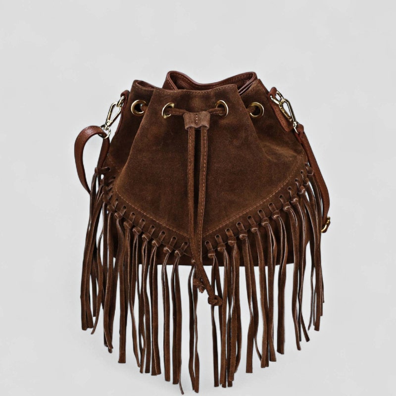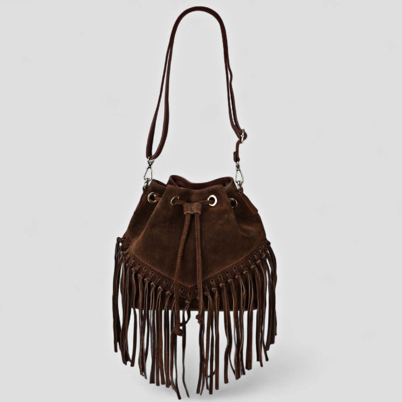BORSA SECCHIELLO CON FRANGE SCAMOSCIATO HEIRAN SUEDE – DISPONIBILE IN VARI COLORI