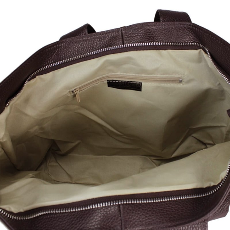 • due manici in pelle per indossarla a spalla