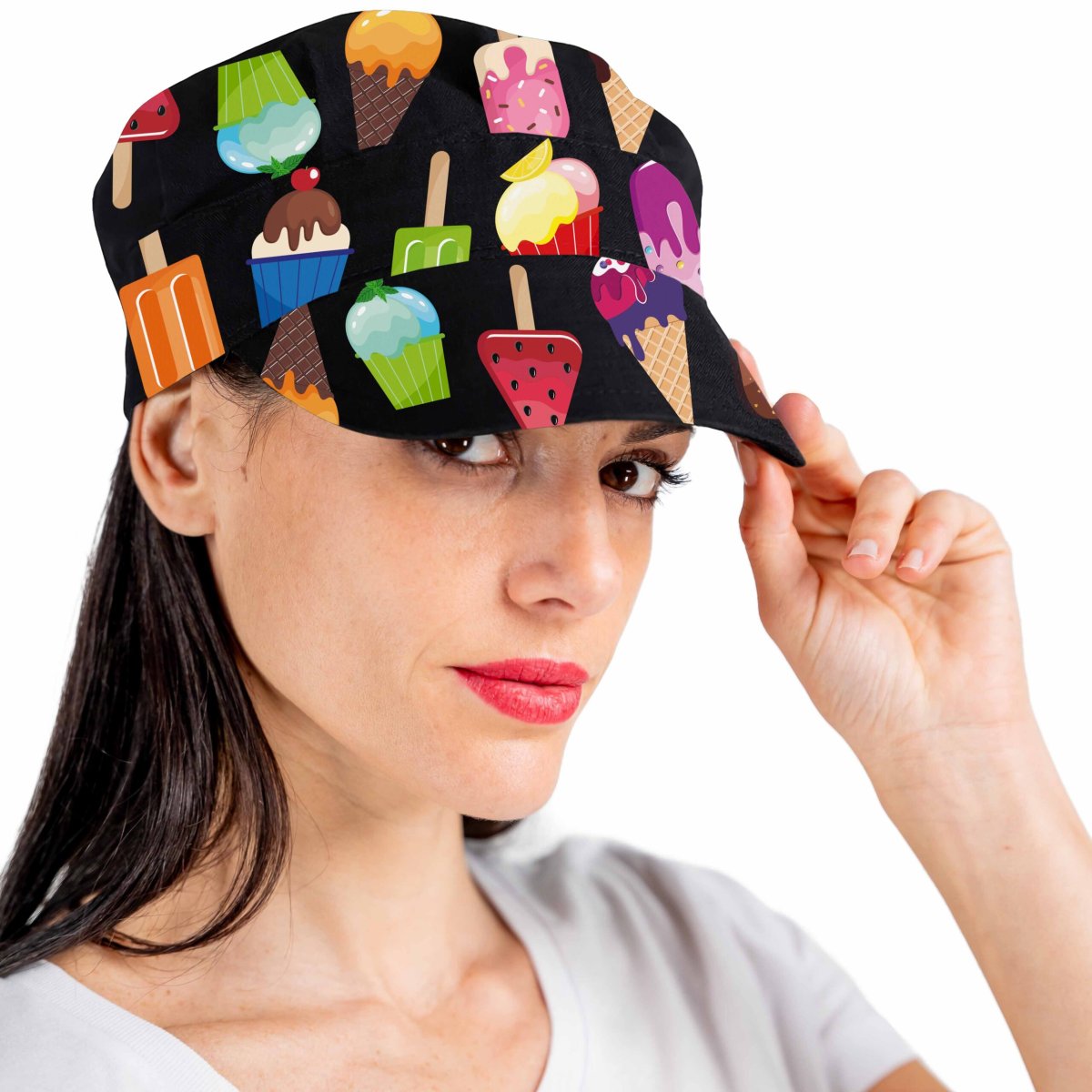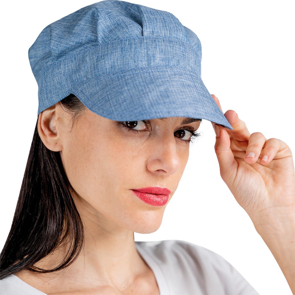 Cappello unisex con visiera corta, taglia unica, posteriore regolabile con velcro.