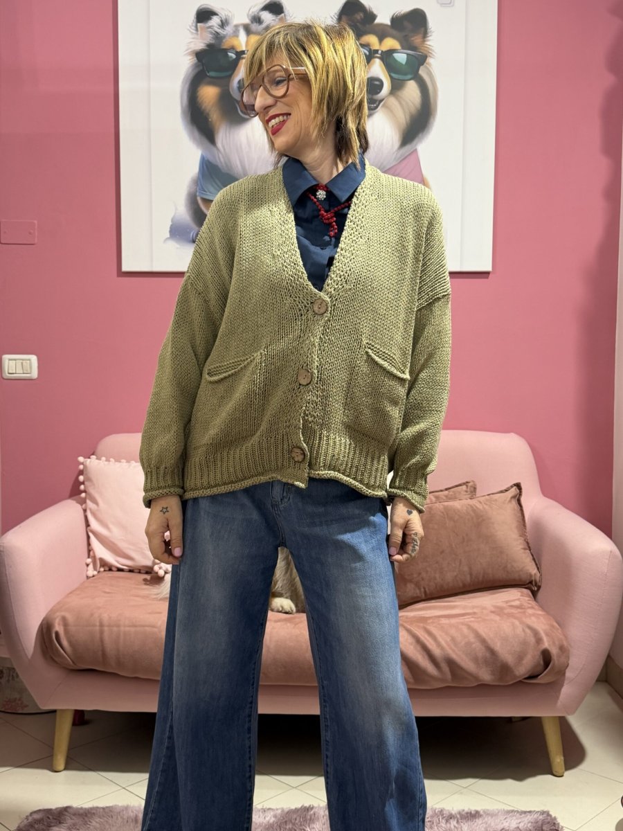 ✨ Cardigan Iconico – Haveone ✨ Il modello che avete amato tantissimo questo inverno in versione misto lana… torna ora in una nuova veste primaverile in filo di cotone 💙 Stesso design iconico, stessa vestibilità avvolgente, ma più leggero e perfetto per la mezza stagione. Realizzato in filo di cotone, ha una mano morbida e naturale, ideale da indossare sopra camicie, t-shirt o top. Il modello è abbastanza oversize, cade morbido e veste comodamente dalla 40 alla 50. ✨ Taglia unica ✨ Bottoni in legno ✨ Taschino frontali ✨ Lunghezza comoda e avvolgente È il cardigan passe-partout che completa ogni…