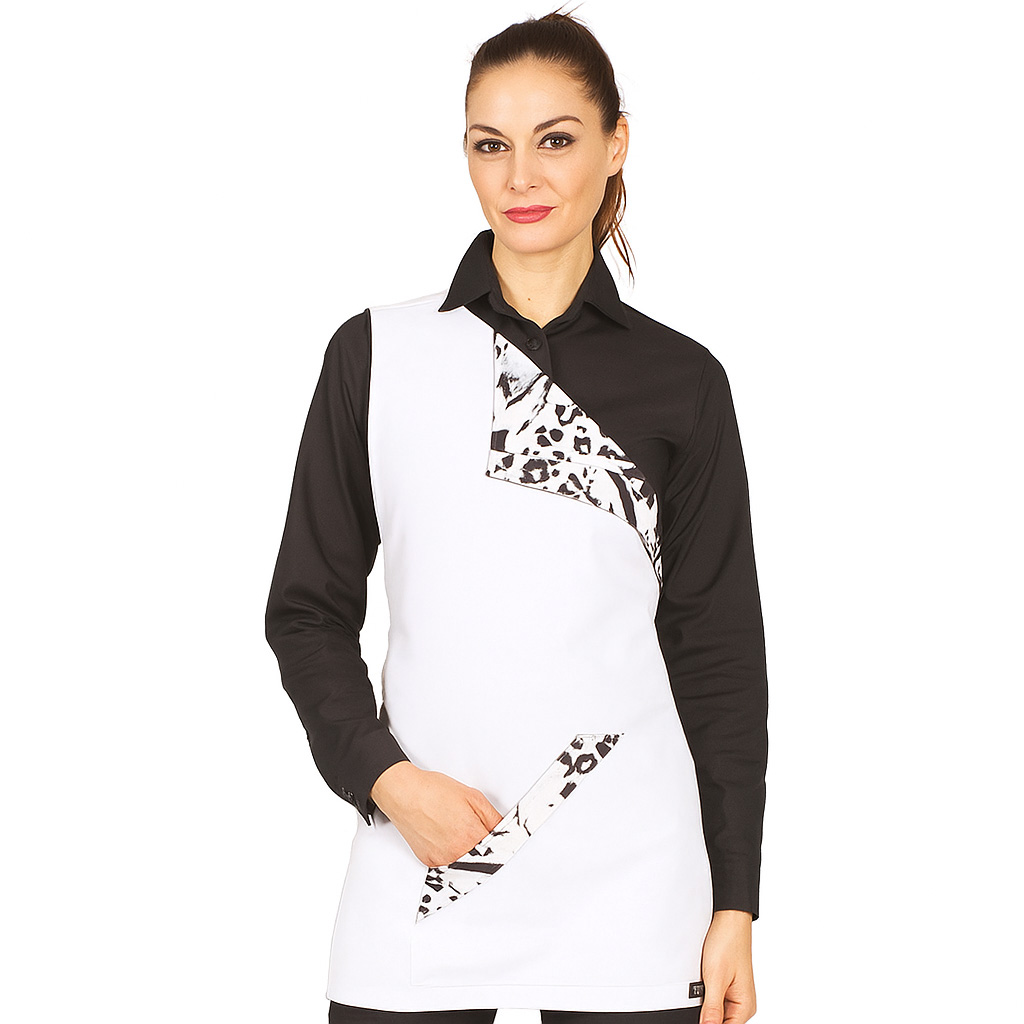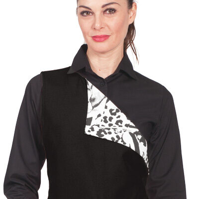 GREMBIULE A PONCHO – paragrembo donna con schiena coperta a monospalla e stampa animalier Taglia unica, vestibilitร regolabile con lacci. Tessuto antimacchia Candeggiabile – No stiro