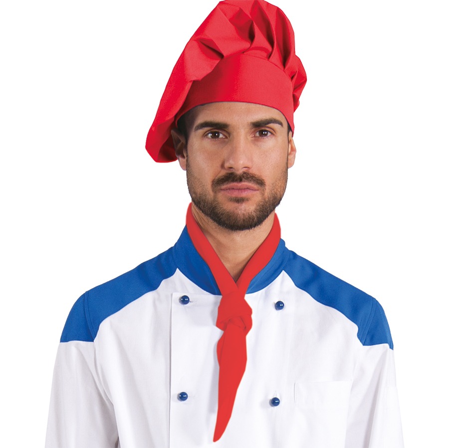 Fazzoletto da cuoco a triangolo, indispensabile in cucina, pasticceria e gelateria. Ideale per salvare il collo e per rendere piรน confortevoli giacche e camicie.