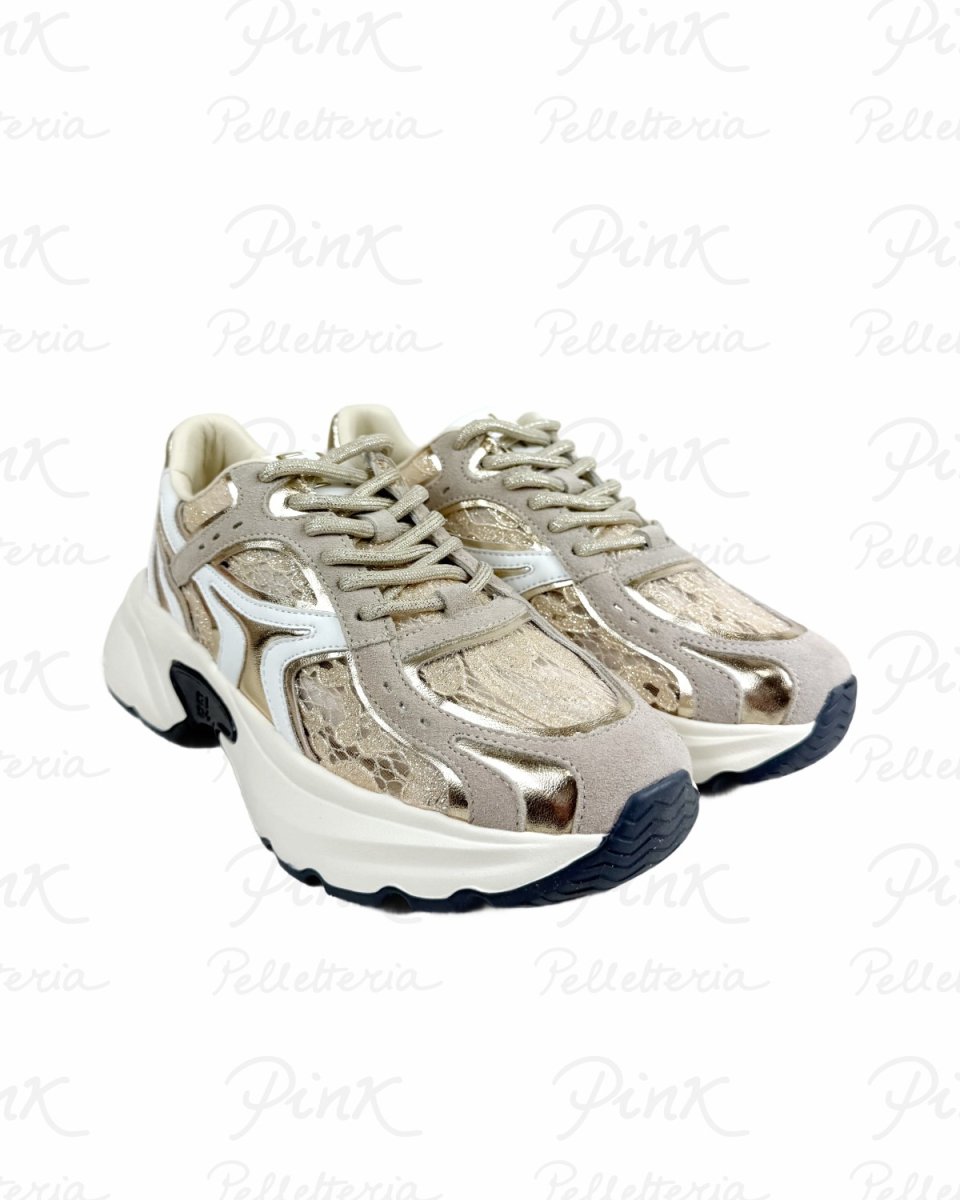 Le sneakers donna GIO+ DALIA 14 Combi Pizzo sono un modello di carattere, ideale per chi vuole una sneaker comoda ma con un effetto โwowโ. La tomaia combina tonalitร beige con dettagli oro/metallizzati e una lavorazione pizzo effetto luminoso, che rende la scarpa elegante senza essere troppo formale. Perfetta per valorizzare sia i look quotidiani che gli outfit piรน curati.