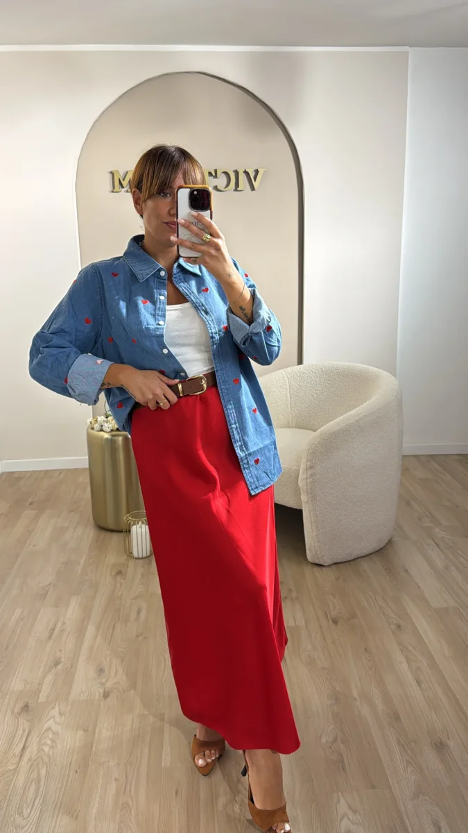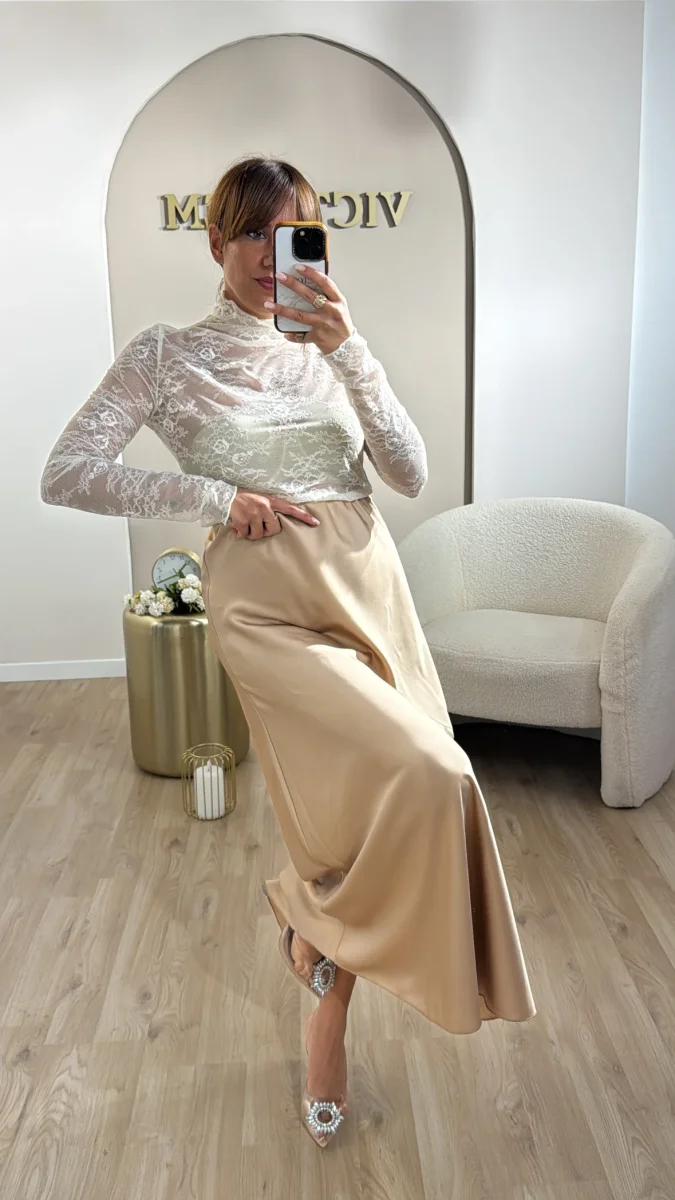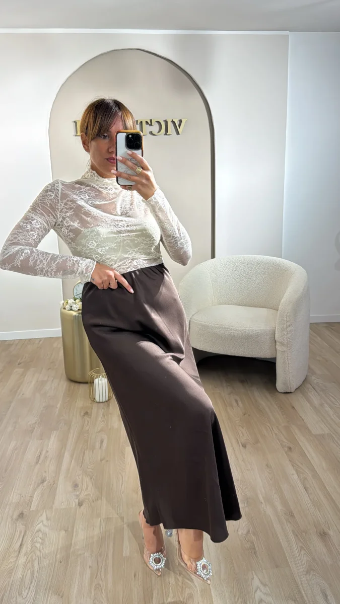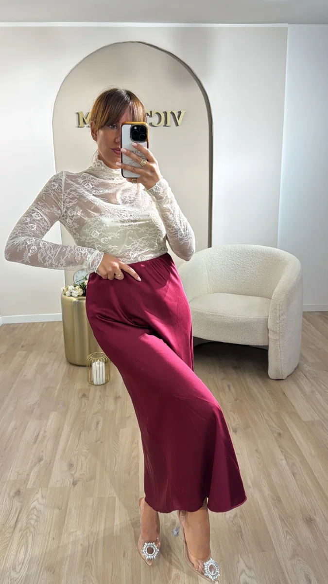 Gonna Midi in tessuto satenne , elastico in vita , veste fino ad una tg 48