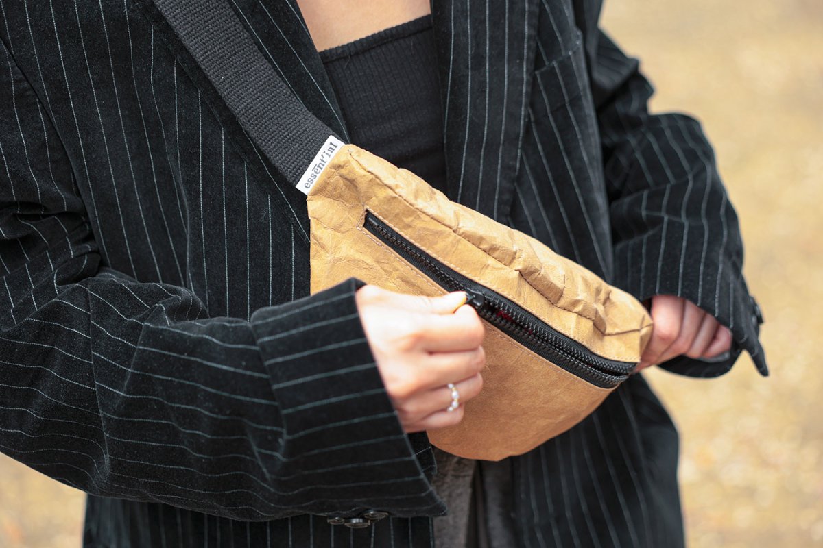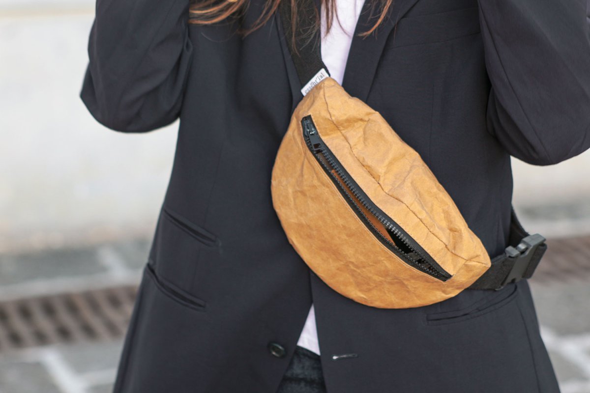 Marsupio realizzato in fibra di cellulosa lavabile. Chiusura con cerniera nera sul fronte. Cinghia regolabile realizzata in cotone rigenerato 100% e chiusura con gancio. Comodo, leggero e versatile! Lavabile in lavatrice a 30ยฐ con sapone neutro. Dimensioni: 25.5 x 7.5 x h. 15 cm.