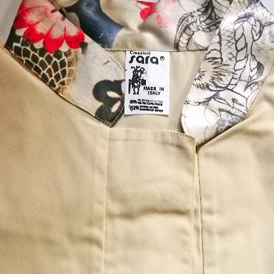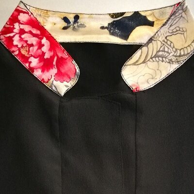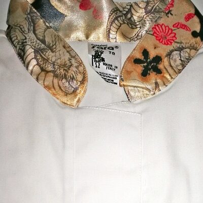 CAMICIA casacca donna manica lunga, collo a fascetta con contrasti in tessuto setizzato fantasia japan, tasche a soffietto, abbottonatura tipo doppio petto stile orientale. Microfibra poliestere: Tessuto antimacchia Candeggiabile – Tessuto leggero – No stiro Misto cotone: Tessuto antimacchia Candeggiabile – Stiro facile