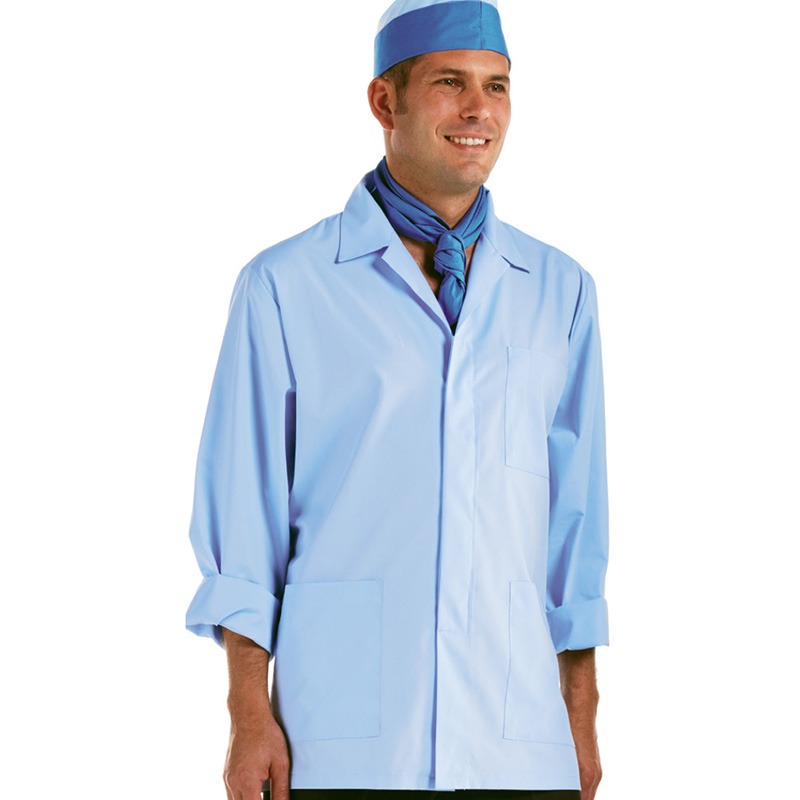 Casacca manica lunga con collo a camicia, stiro facile.