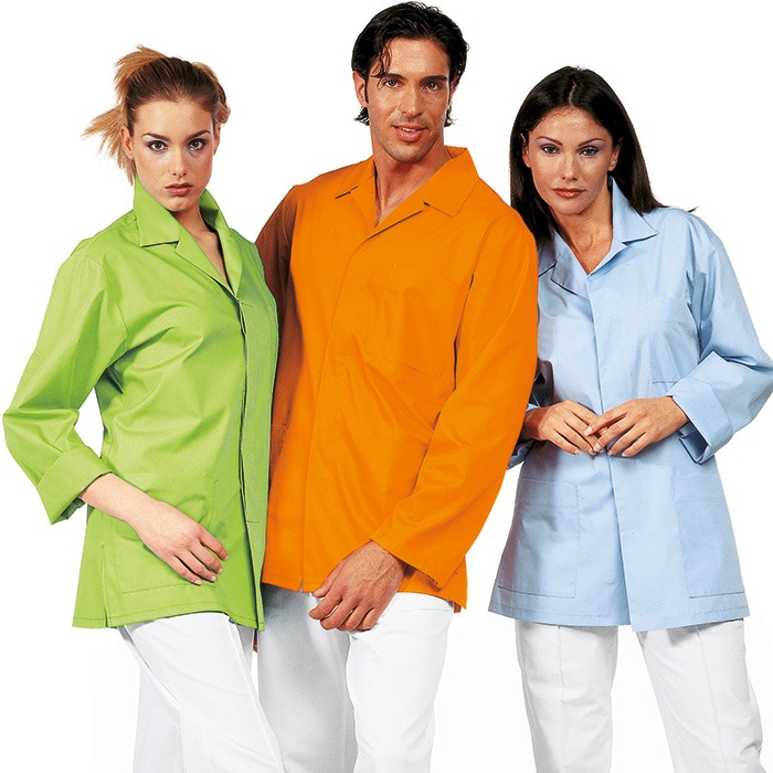 CASACCA unisex, manica lunga, collo a camicia, allacciatura con bottoni nascosti. Stiro facile