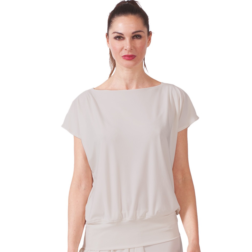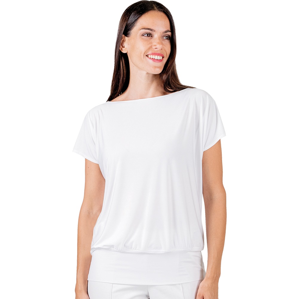 MAGLIA donna in jersey, manica corta,ย collo a barchetta. Tessuto antimacchia Candeggiabile – No stiro