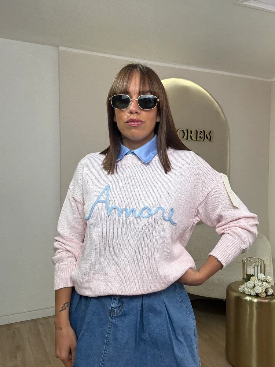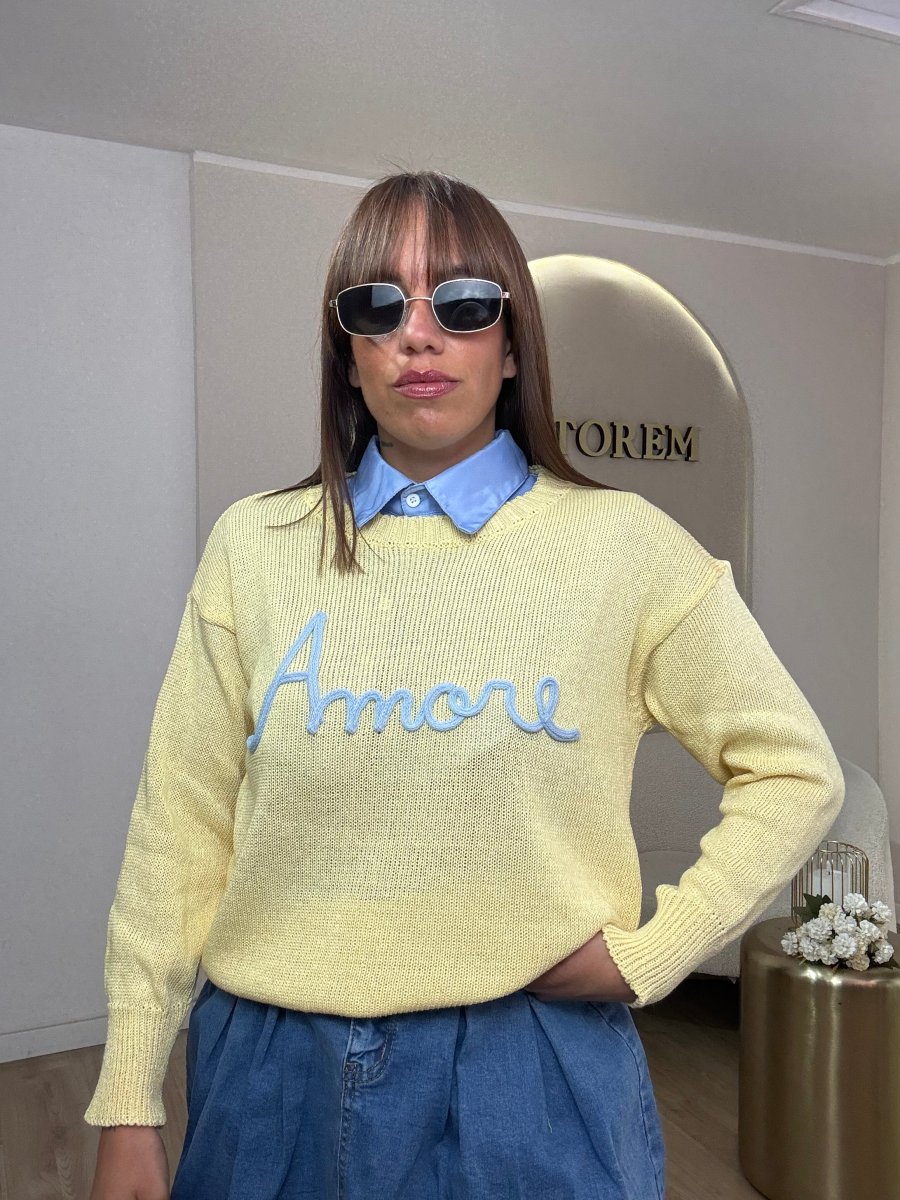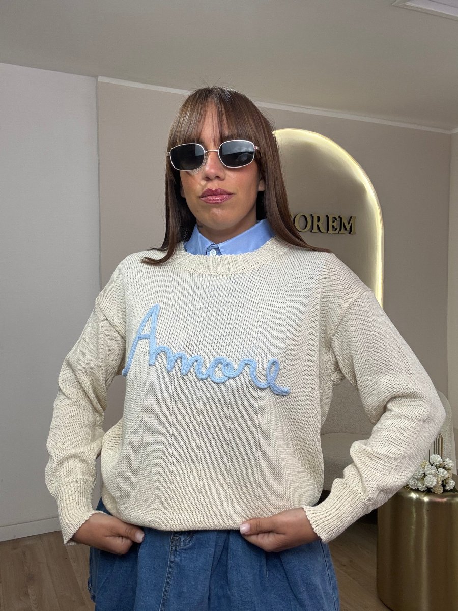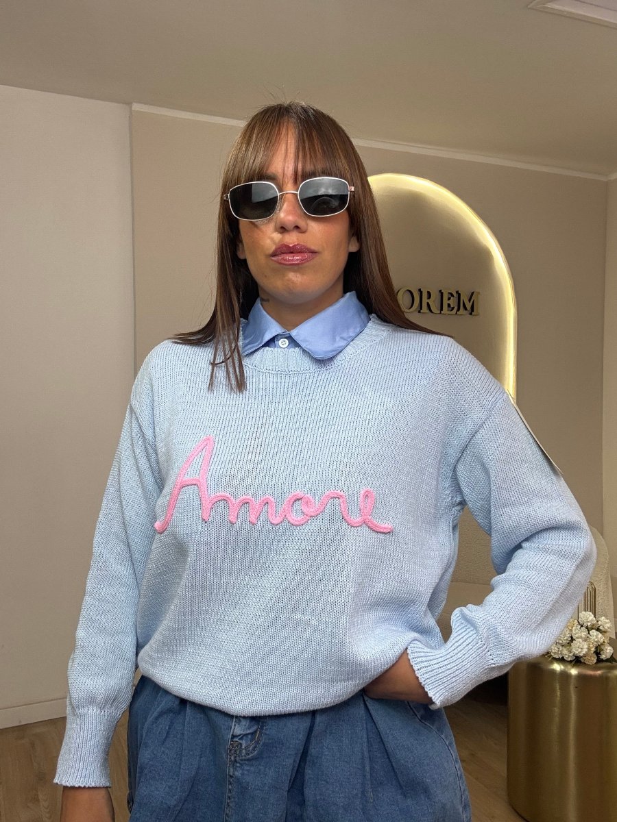 Maglia in filo girocollo. Vestibilitร  fino a una taglia 46.