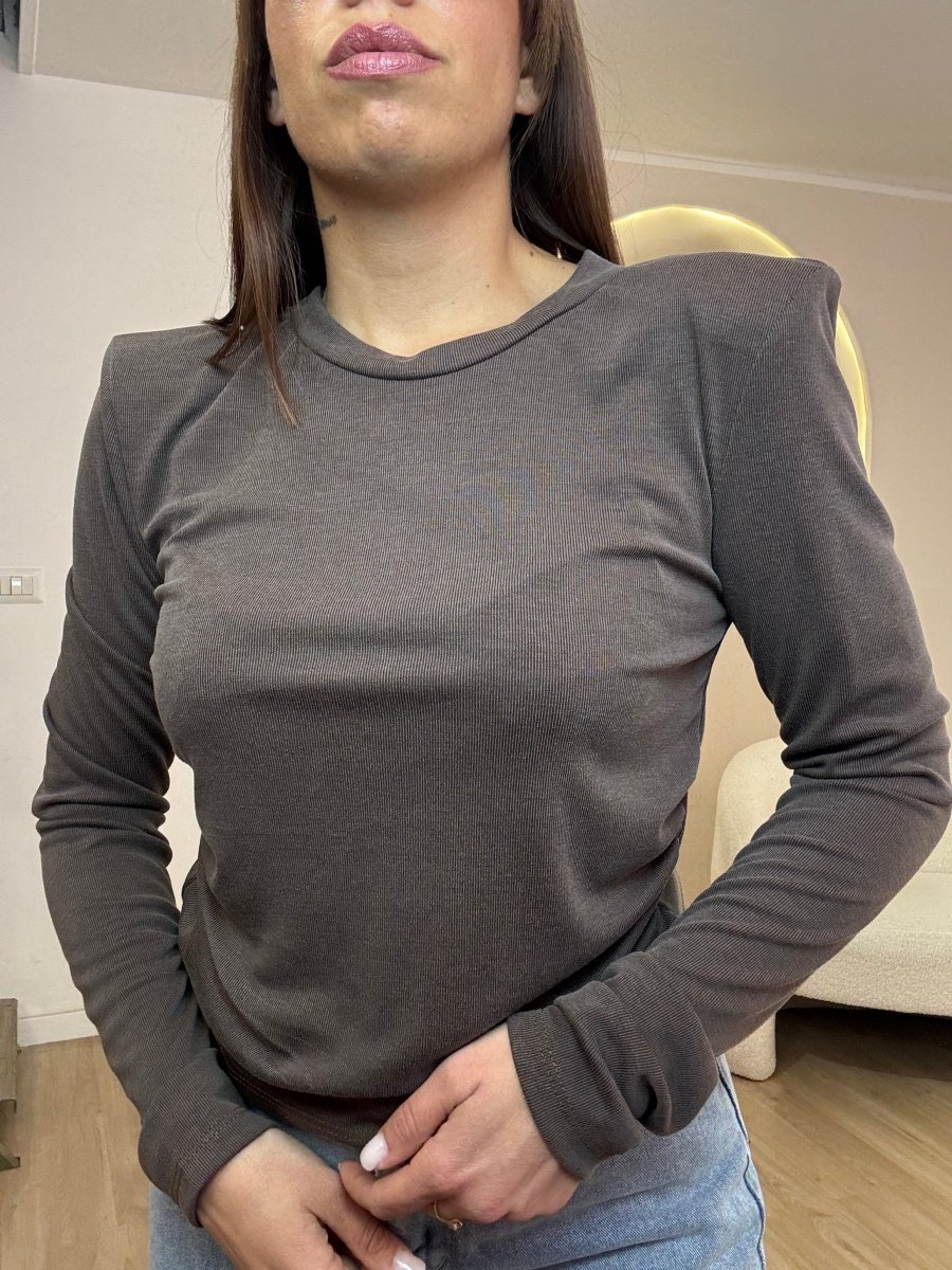 Maglia con spallina, tessuto leggero a costine, leggermente arricciata. Veste fino a una taglia 44