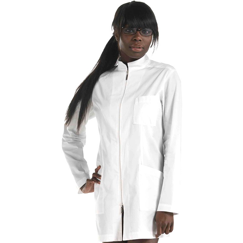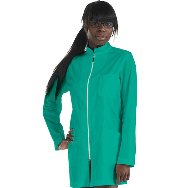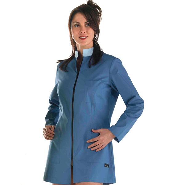 Camice donna manica lunga,ย in policotone con due tasche ed un taschino. Collo a fascetta e martingala posteriore in contrasto. Chiusura lampo centrale. note: il colore verde chirurgia รจ tinta unita (no contrasti)