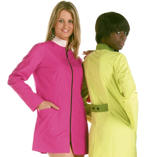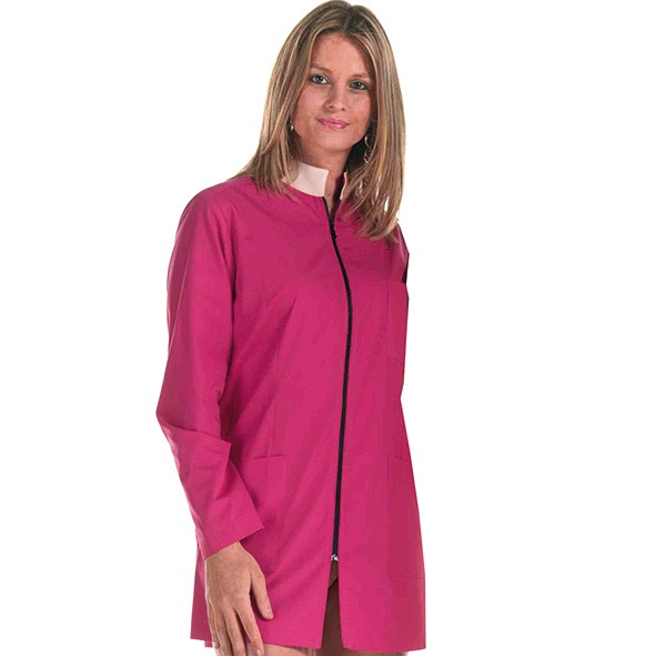 Camice donna inย policotone con due tasche ed un taschino. Collo a fascetta e martingala posteriore in contrasto. Chiusura lampo centrale.