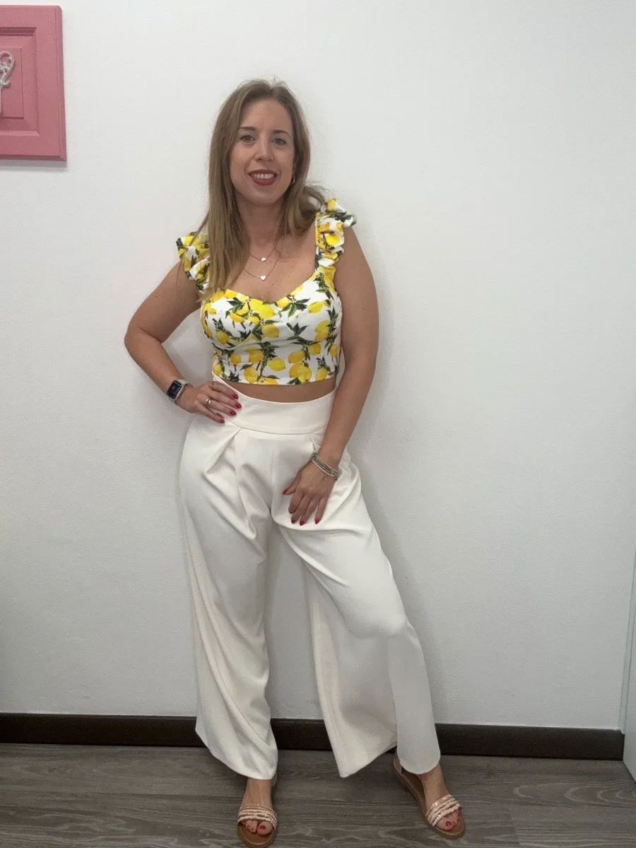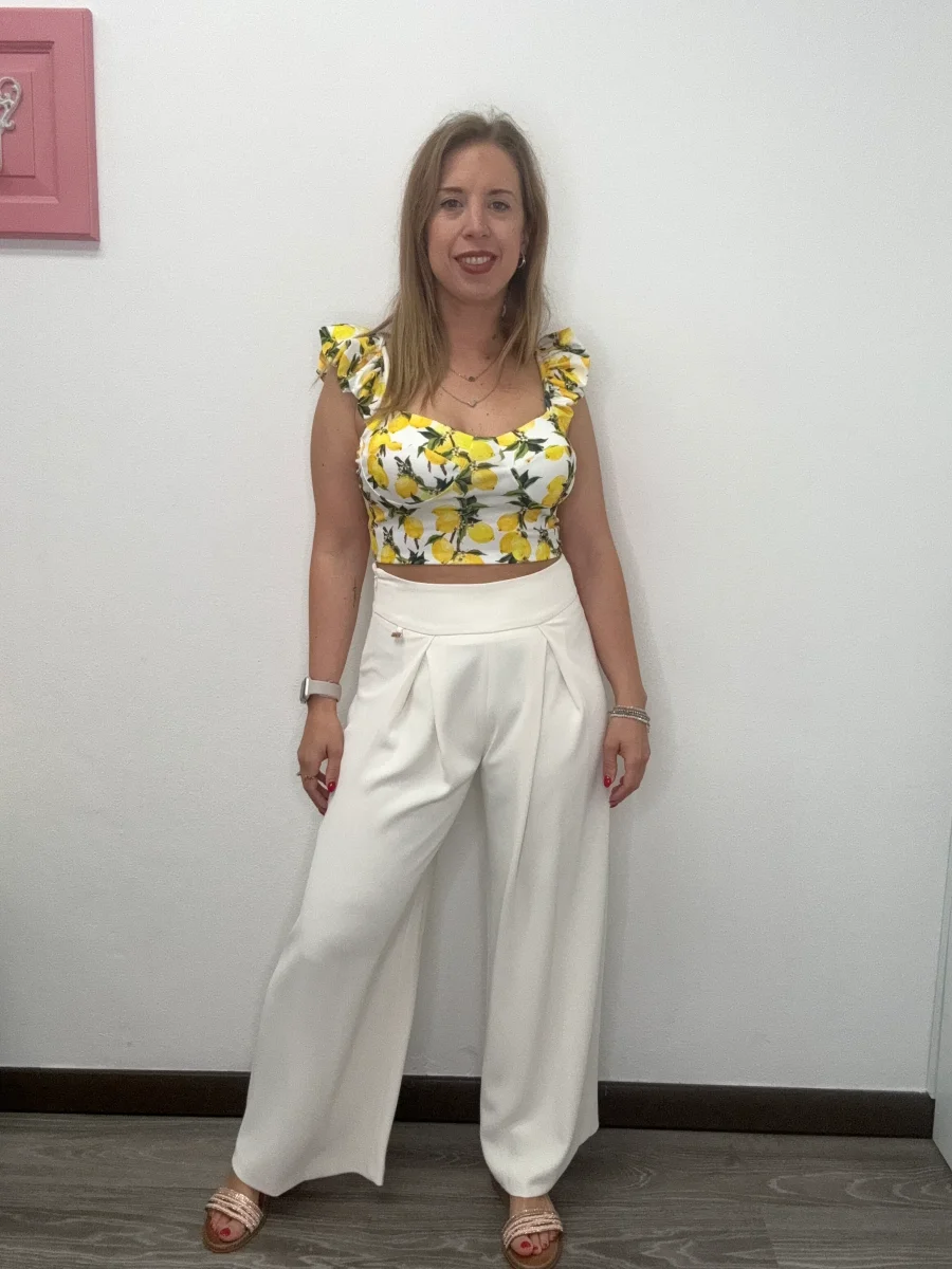 Pantalone cropped con piegoni