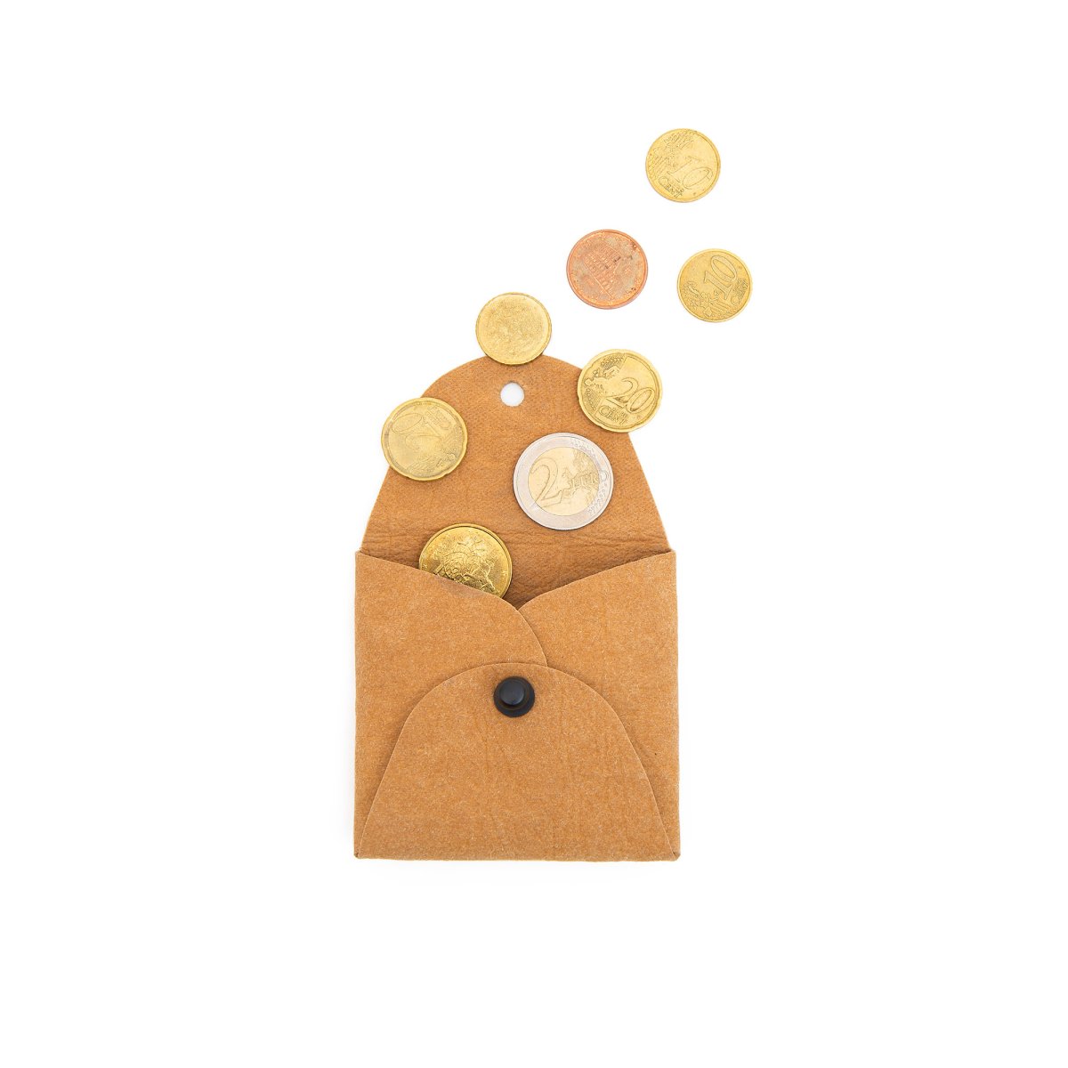 Portamonete realizzato in fibra di cellulosa lavabile. Ha una chiusura con un pomello che permette di tenere tutto al sicuro. Comodo da tenere in tasca, pratico e funzionale! Lavabile in lavatrice a 30ยฐ con sapone neutro. Dimensioni: 8 x 8 cm