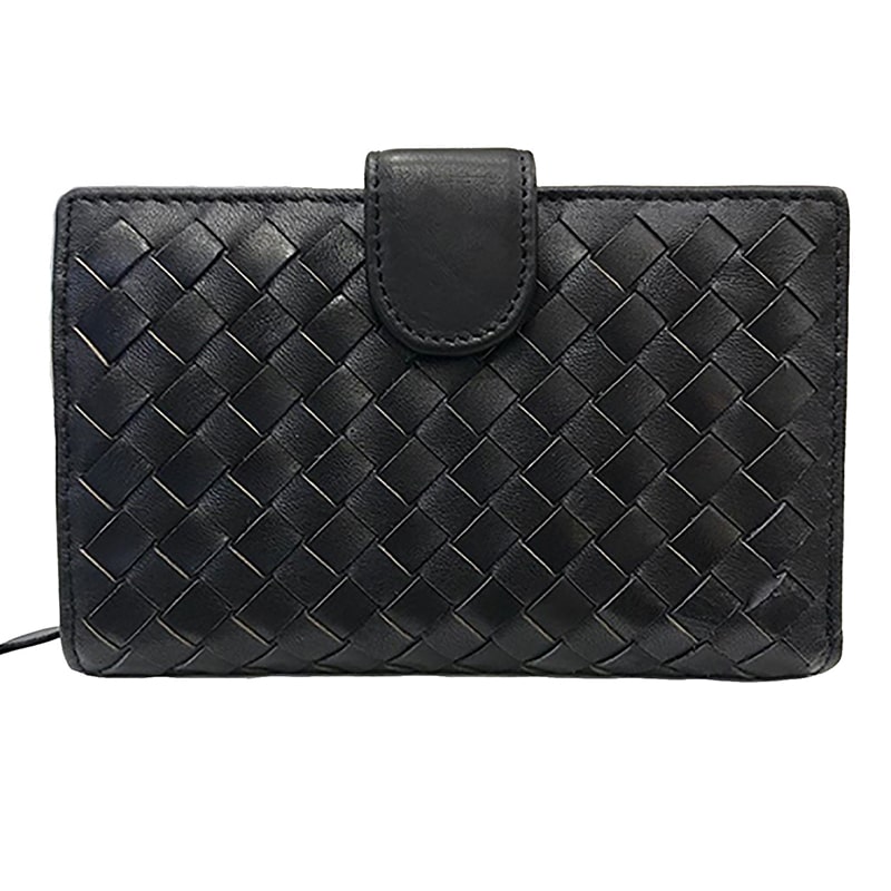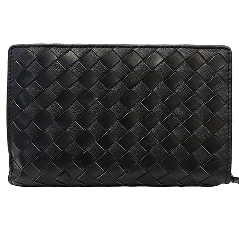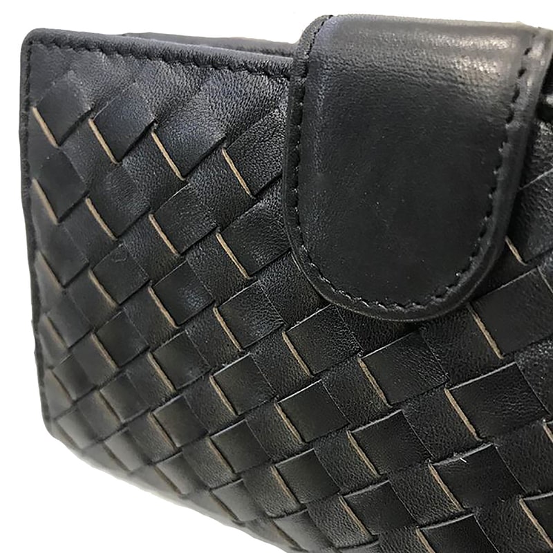 PORTAFOGLIO DONNA IN PELLE INTRECCIATA CON PORTACARTE E PORTAMONETE NERO