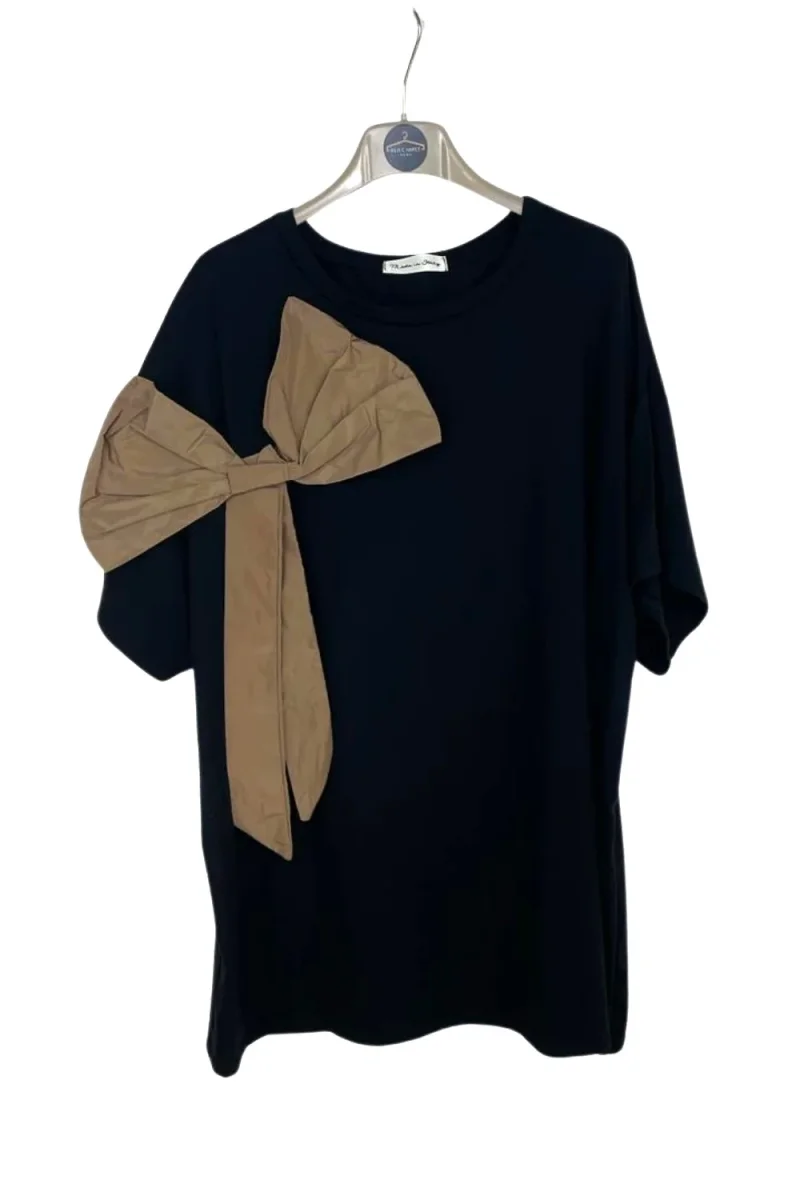 T-shirt girocollo con fiocco
