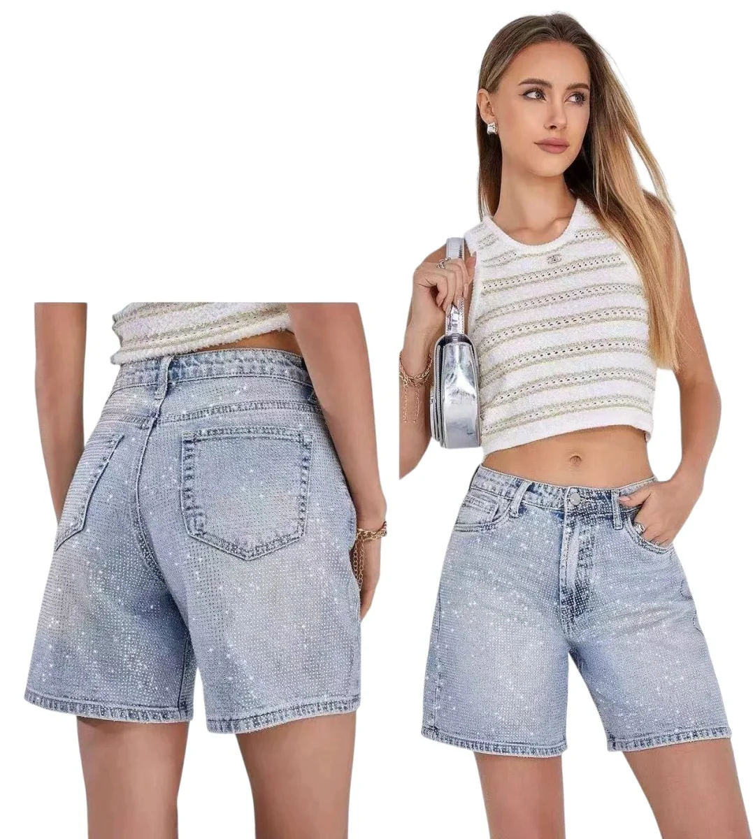 Short in jeans cascata di strass – abbigliamento – Stilosa