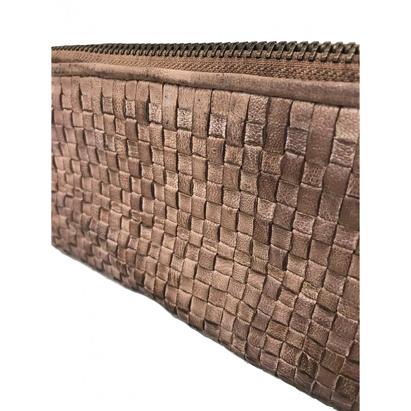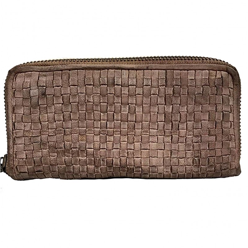 SIRIO PORTAFOGLIO PELLE MORBIDA VINTAGE INTRECCIATA TAUPE