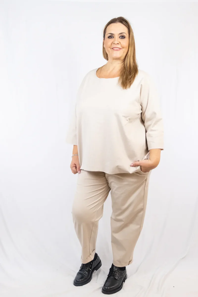 MAGLIA stondata manica 7/8 ALTEZZA E TAGLIA MODELLA 175cm/II STAGIONE AI23/24 DESCRIZIONE TECNICA maglia COMPOSIZIONE ARTICOLO 65%VISCOSA 30%poliestere 5%elastan Codice prodotto:ST51908