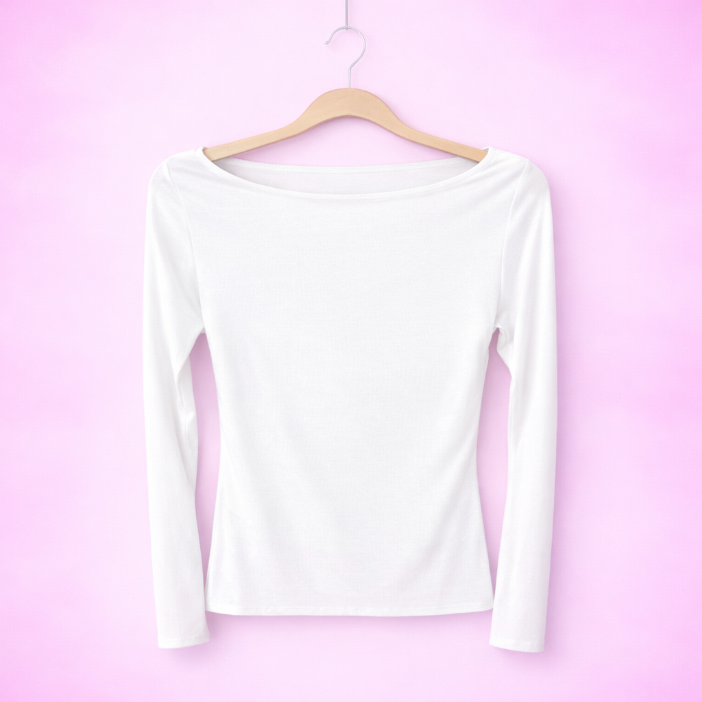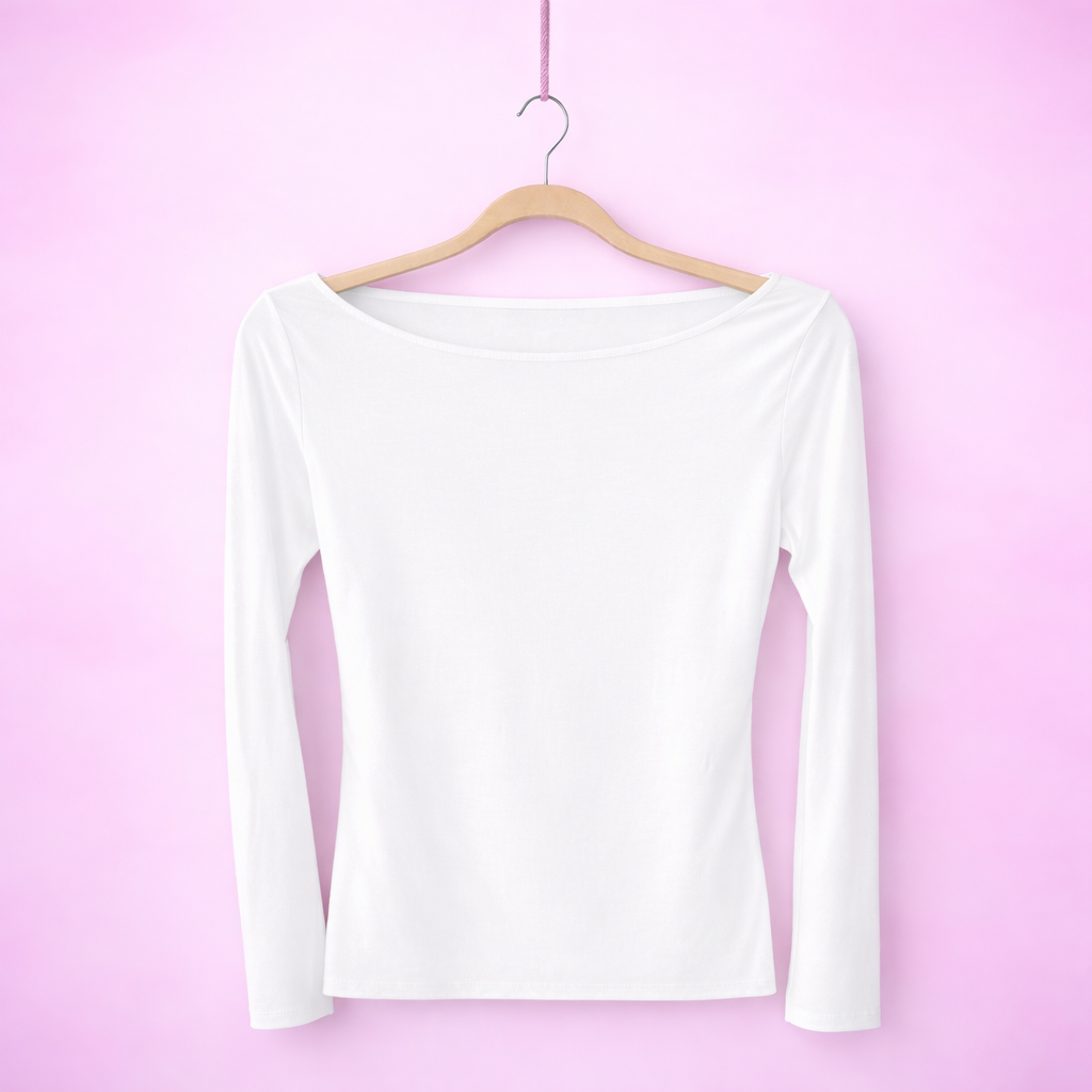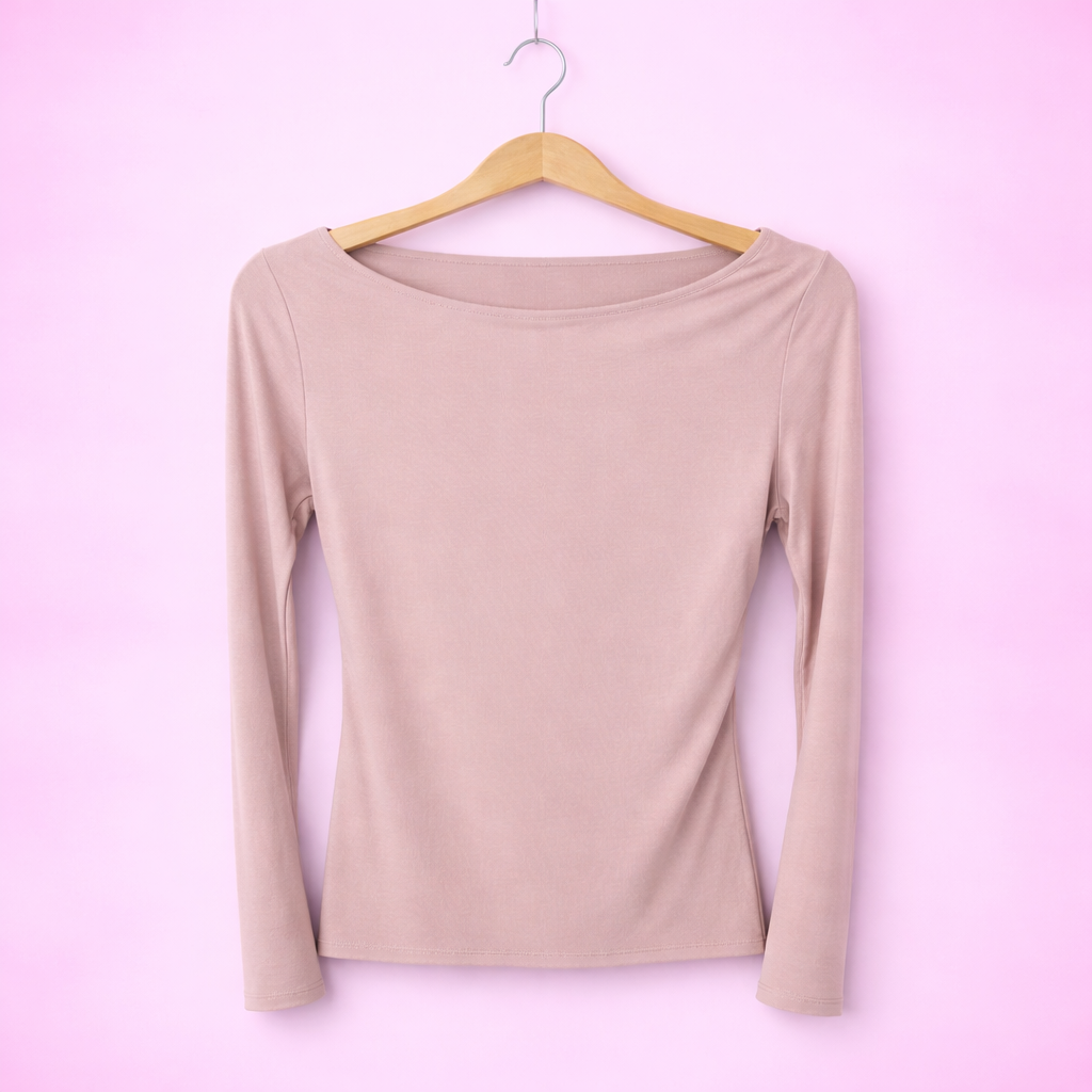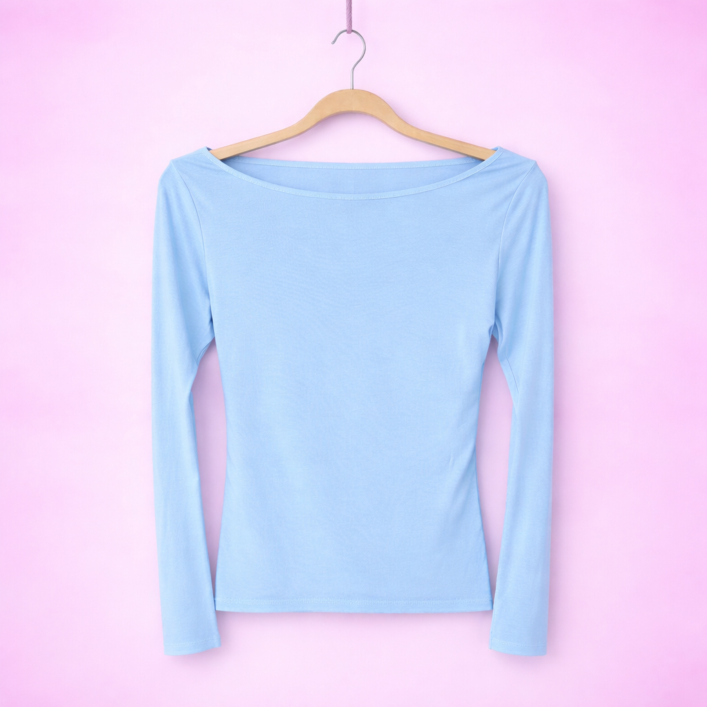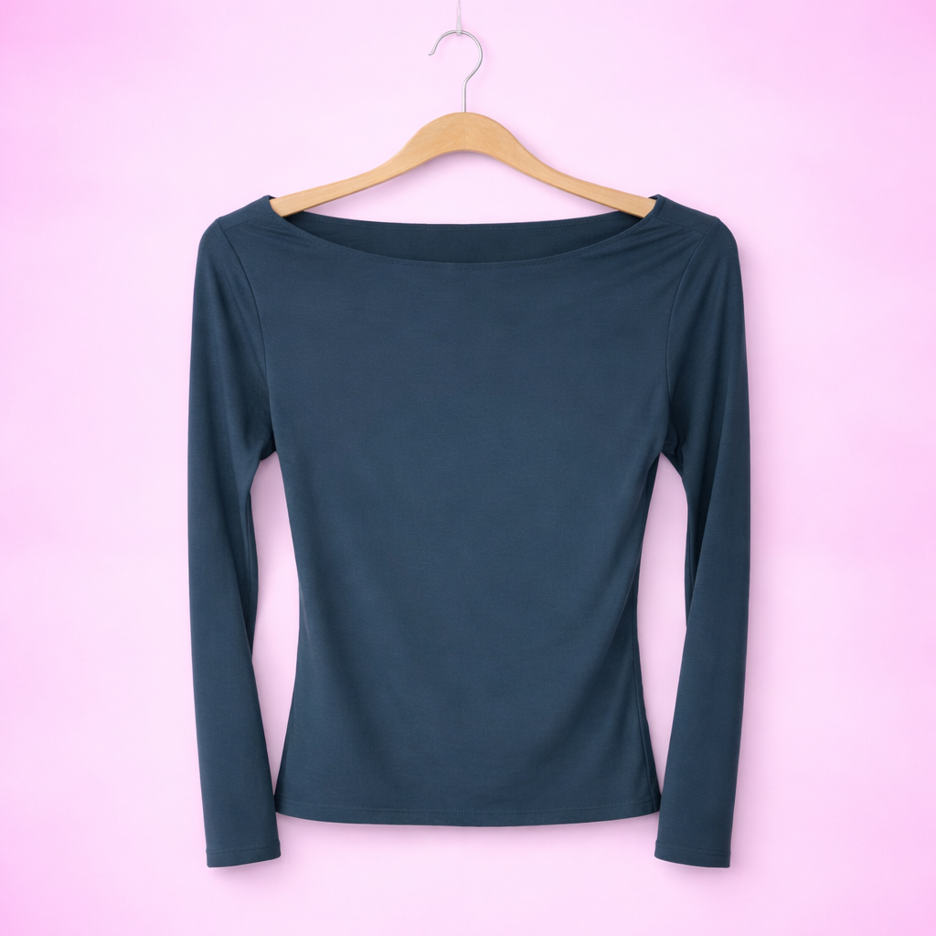 T-shirt in 100% viscosa con taglio vivo nella scollatura e sul fondo vestibilitร stretch e aderente perfetto da sfruttare come sotto giacca o come sotto ma maglioncino piรน avanti, veste fino a una 50 essendo molto elasticizzato