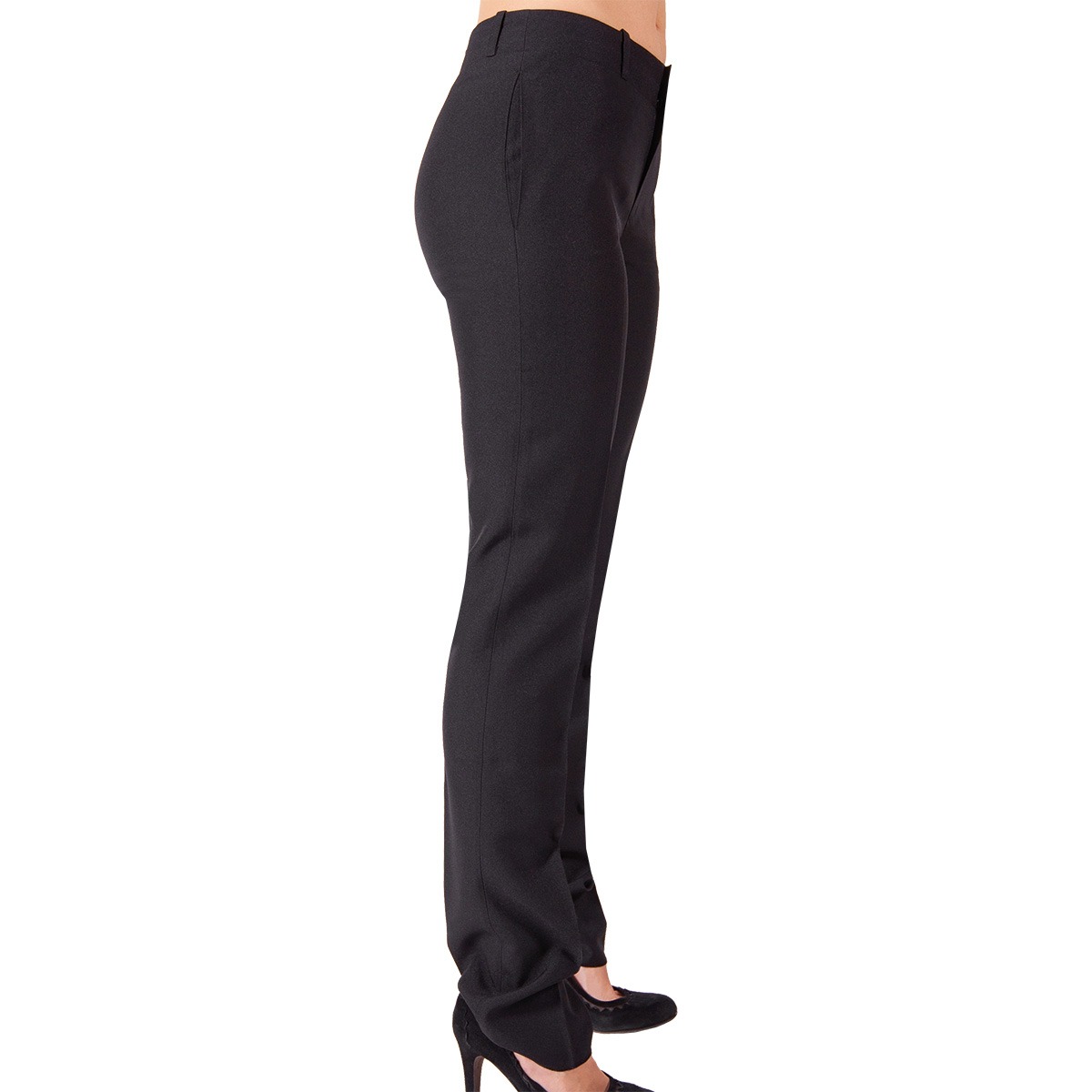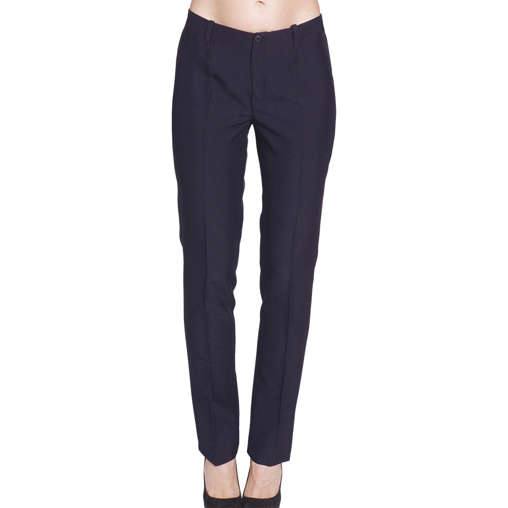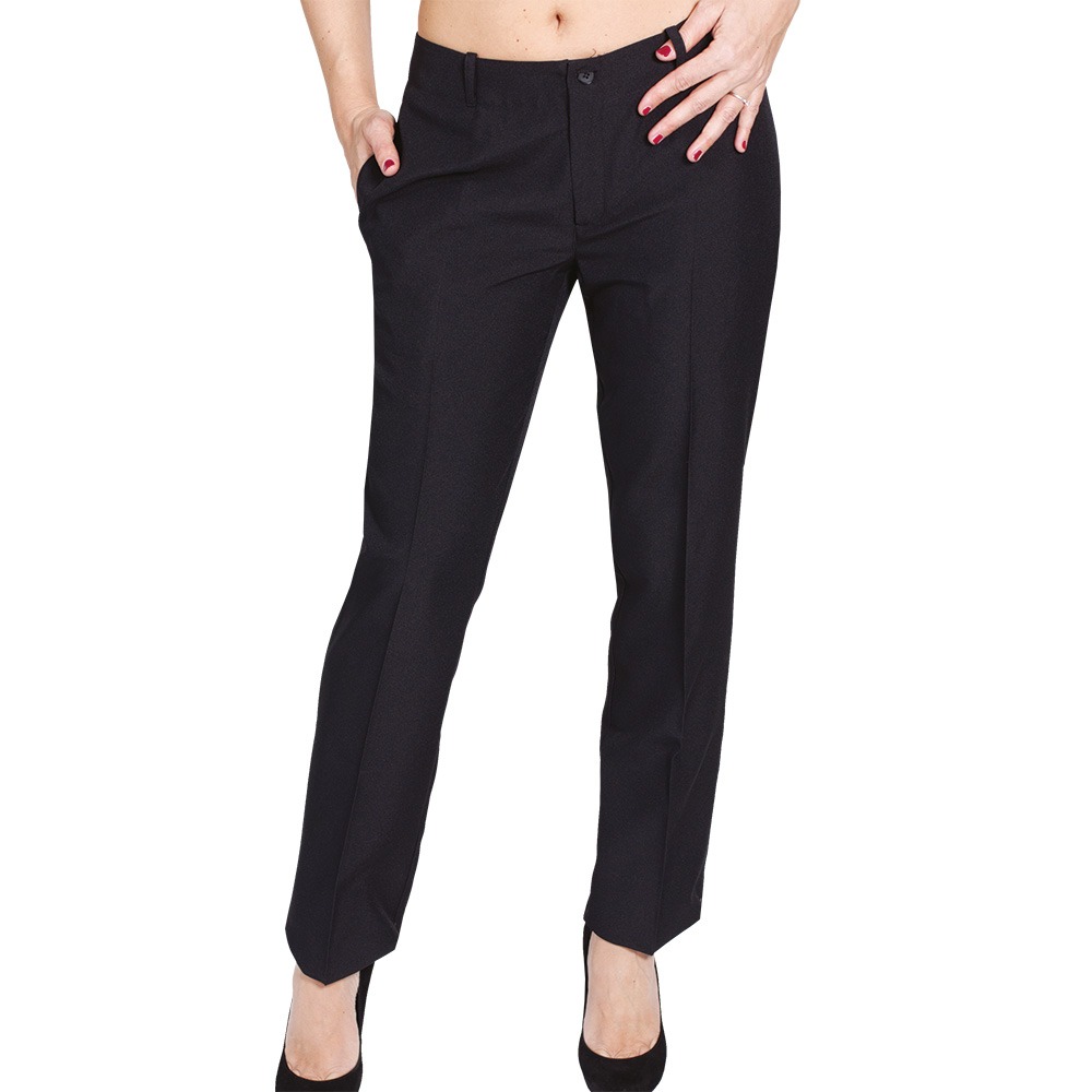 Pantalone donna taglio classico con passanti, chiusura lampo frontale e bottone. Tessuto antimacchia Candeggiabile – No Stiro